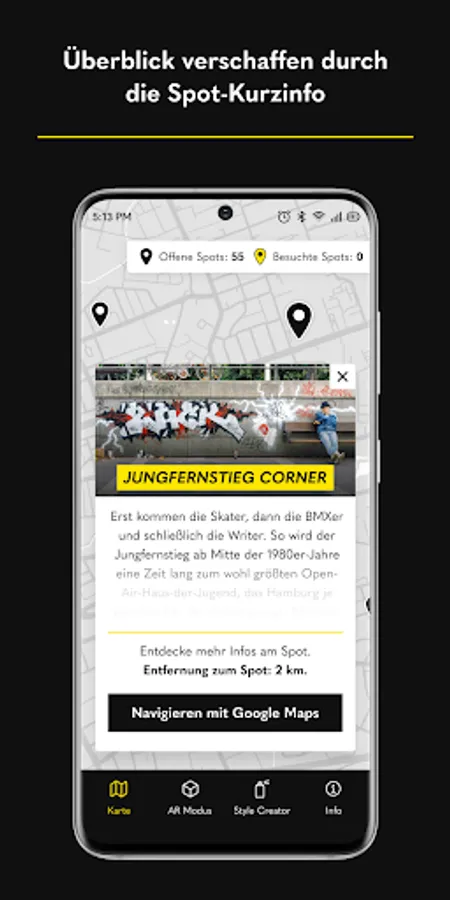 The accompanying digital services provide a location-based look into the past and thus extend the exhibition into the space in which graffiti is at home: the city.