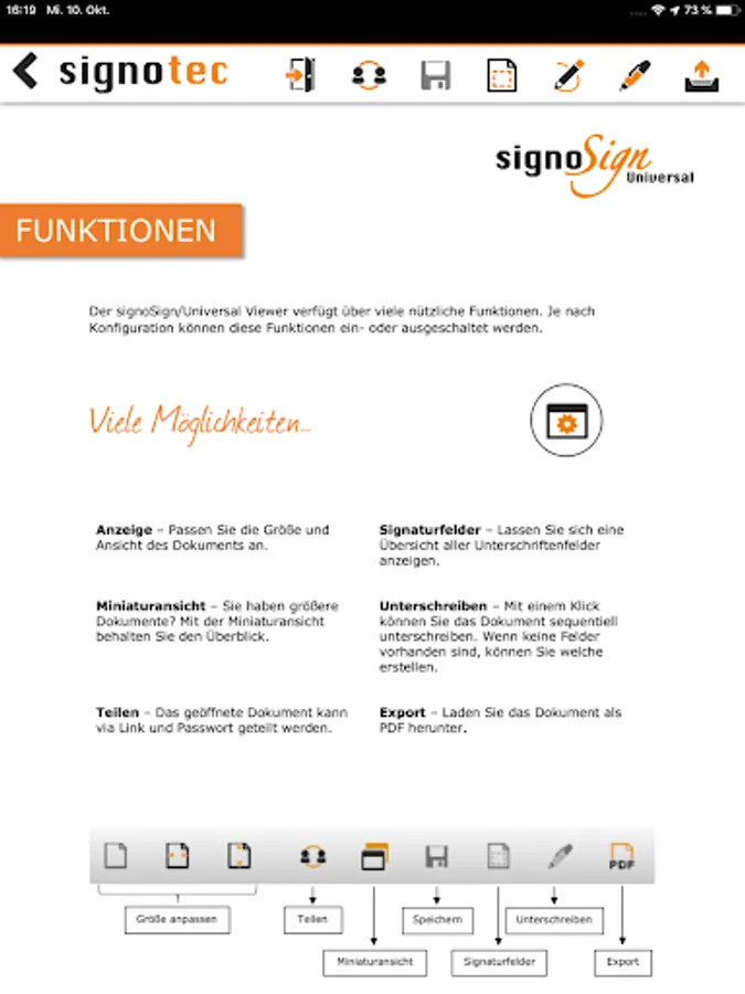 signoSign / Universal can be reached on all end devices via a qualified HTML5 capable browser and thus enables cooperation even in heterogeneous IT landscapes.