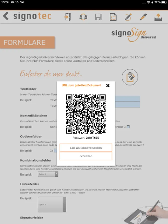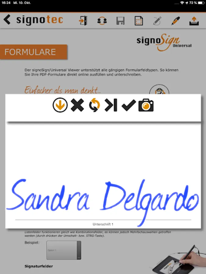 signotec signoSign / Universal is the solution to sign PDF documents legally, legally and handwritten, thus enabling the integration of a media-free workflow.