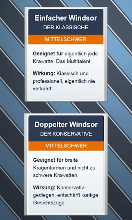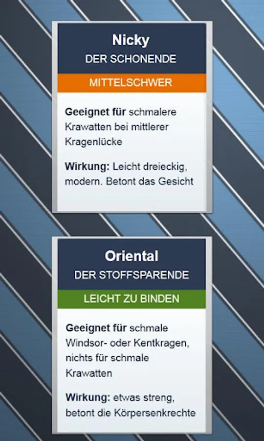 This is the first entirely German-speaking tie knot App. The app brings the user with images and texts that tie tying step by step! Following tie knots are covered: