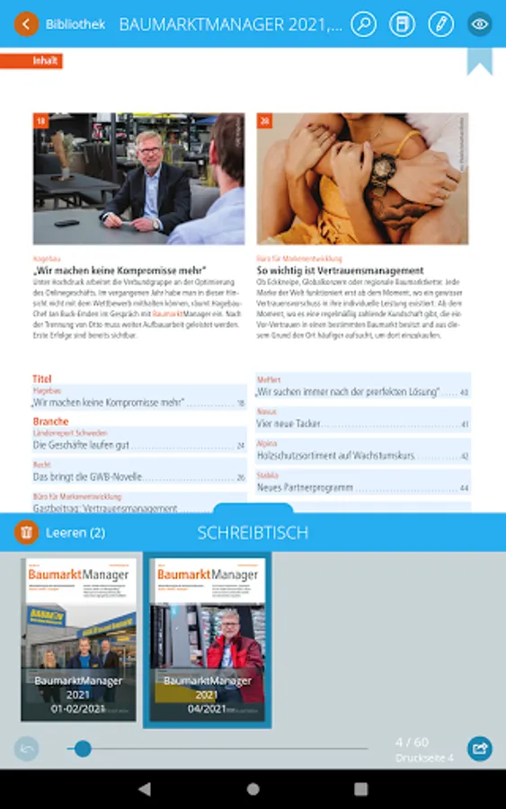 The e-paper is aimed at the entire retail sector with do-it-yourself departments as well as the specialized types of business with construction, do-it-yourself and gardening needs. At BaumarktManager, the makers of the stores with their strategic successes are in the foreground.