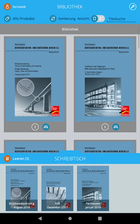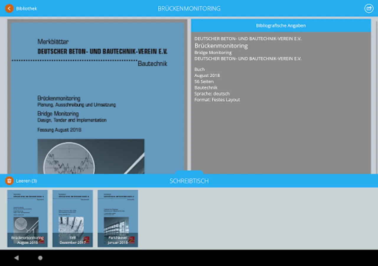The app "DBV-Schriften" contains all currently valid guides of good practice of the Deutscher Beton- und Bautechnik-Verein DBV.