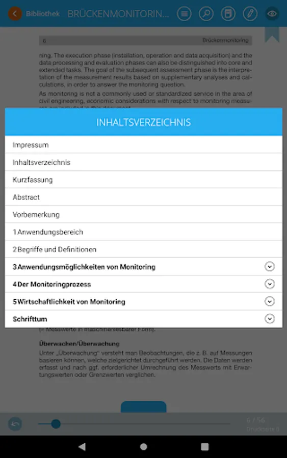 Using the app, you keep track of all the content – with the electronic table of contents and the quick search function, you can easily find your way around the documents.