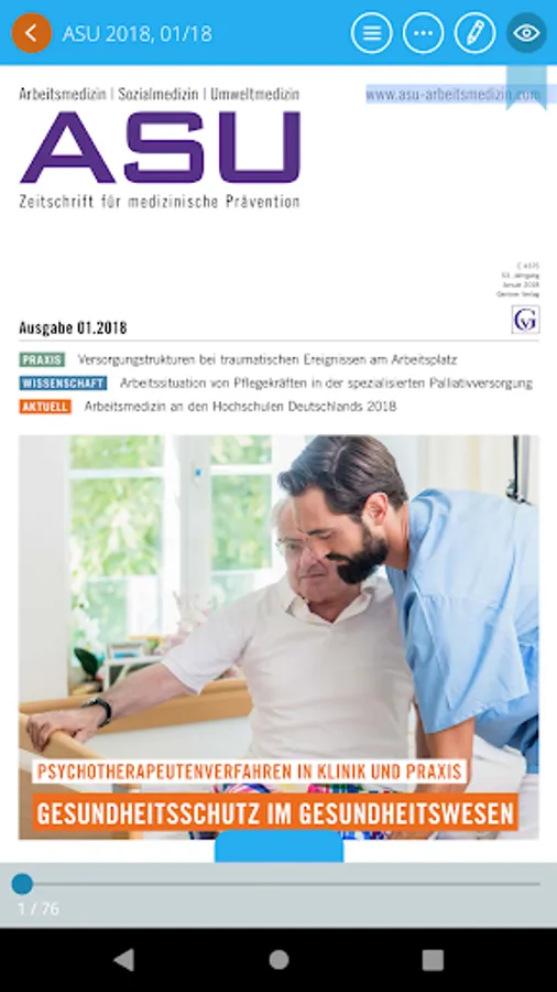 The Healthy Work E-Paper app, the print editions of the journals "Health Social Medicine Umweltmedizin- Journal of preventive medicine" and "medical expert" as e-paper is available. The e-paper linked directly with content in the online archives. The e-paper already published a few days before the Issue.