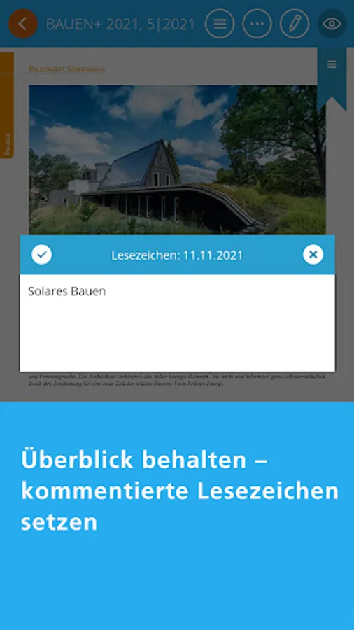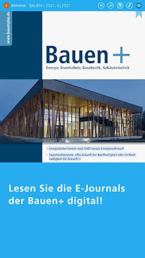 The app "Bauen+" contains all issues of the journal since January 2019.