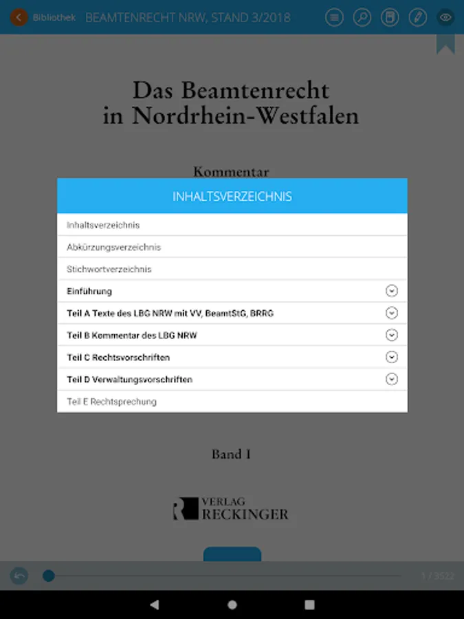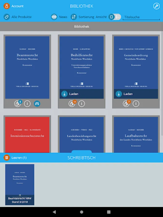 This is your application for specialized publications with added value. Get easily accustomed to the electronic table of contents and the fast and intelligent search in all publications. The work desk function helps you search within an entire publication.Add bookmarks and your own annotations in any desired passage, in the form of texts, images, photos or audio comments. This app offers thus a valuable library of online publications with high performance additional features – all this in an attractive design.
