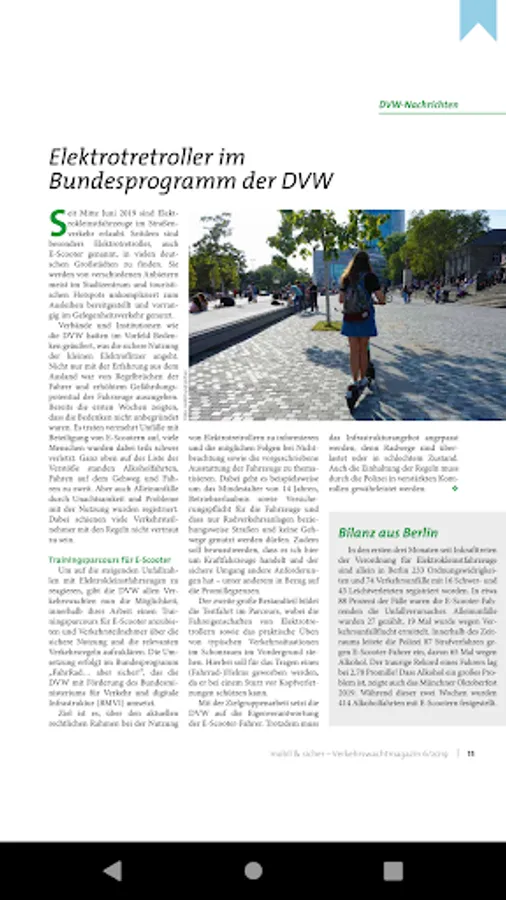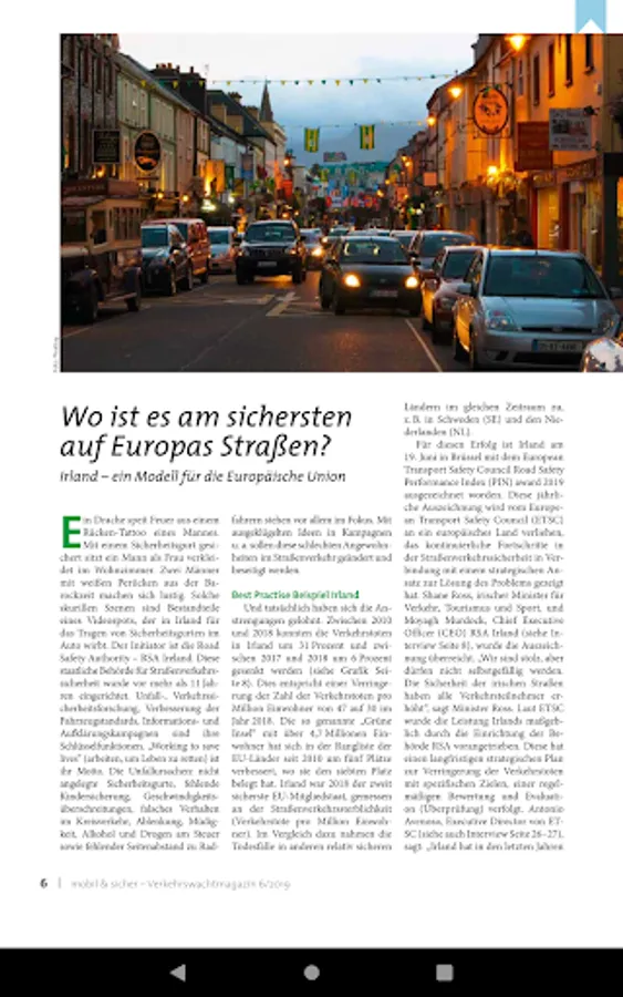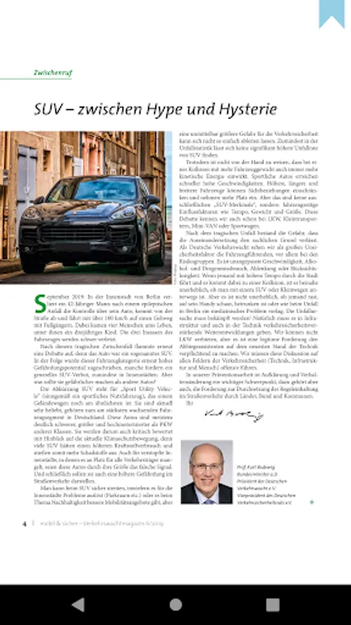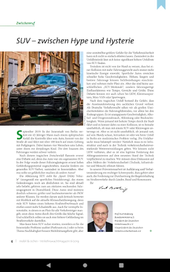 "mobile and safe" contains professionally competent, journalistically effective articles as well as tips on current topics in traffic safety, traffic education, traffic education, traffic psychology, traffic policy, traffic technology, traffic law, accident research, mobility, traffic and the environment.