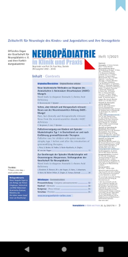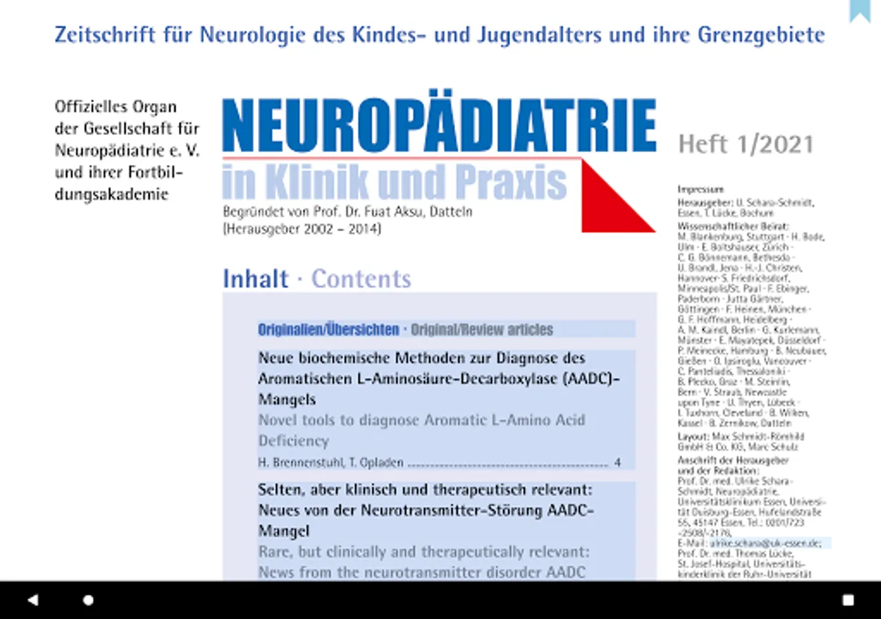 "Neuropaediatrics in Clinic and Practice" appears four times a year, at the beginning of February, May, August and November. It is edited by Prof. Dr. med. Ulrike Schara, Essen and Prof. Dr. med. Thomas Lücke, Bochum.