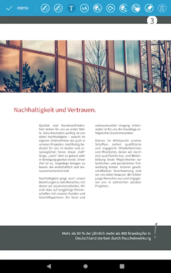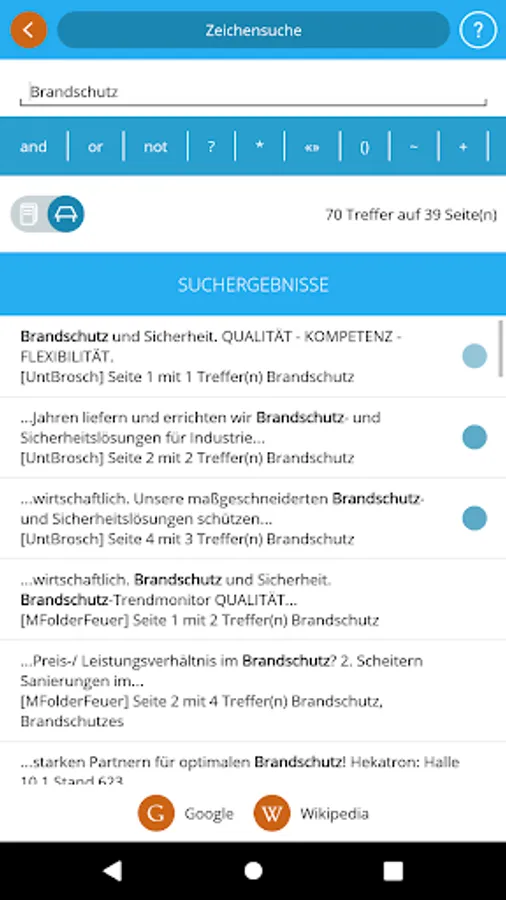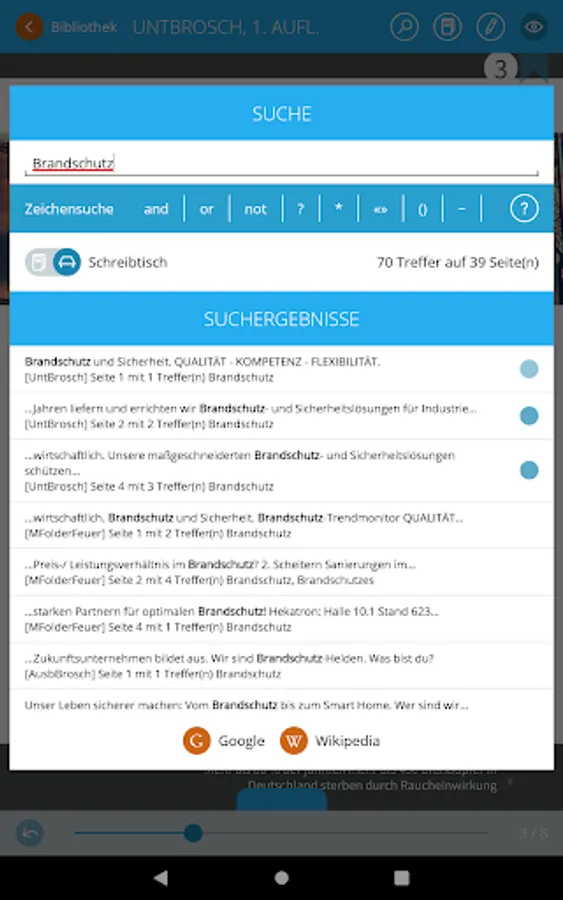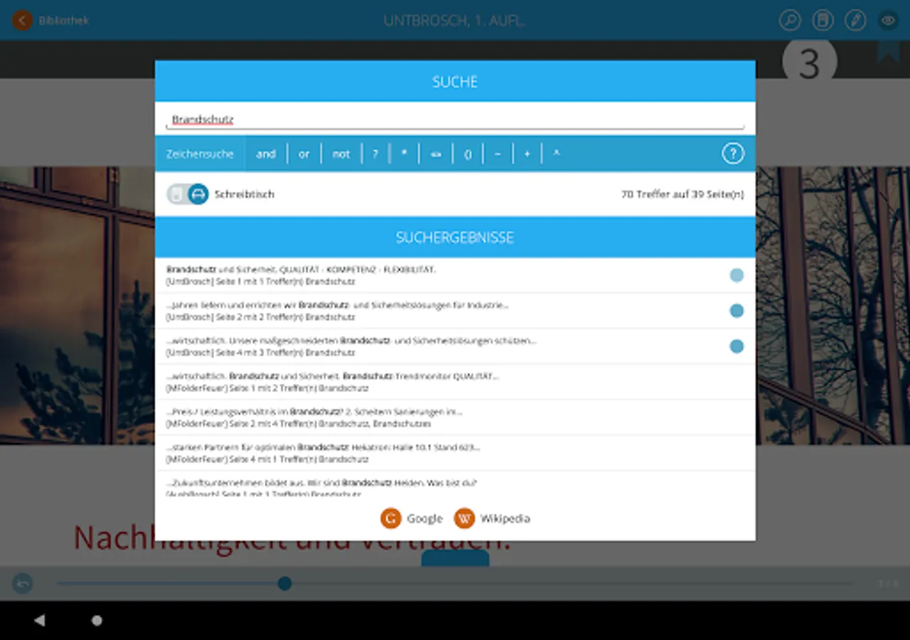 The app Fire Protection Document Center provides a smart and very fast search for both titles and keywords in documents. Electronic directories and links existing in the individual documents are retained and can be fully utilized in the app. Text passages can be marked or copied and can be provided with text, image and audio comments.