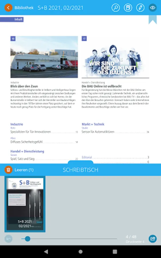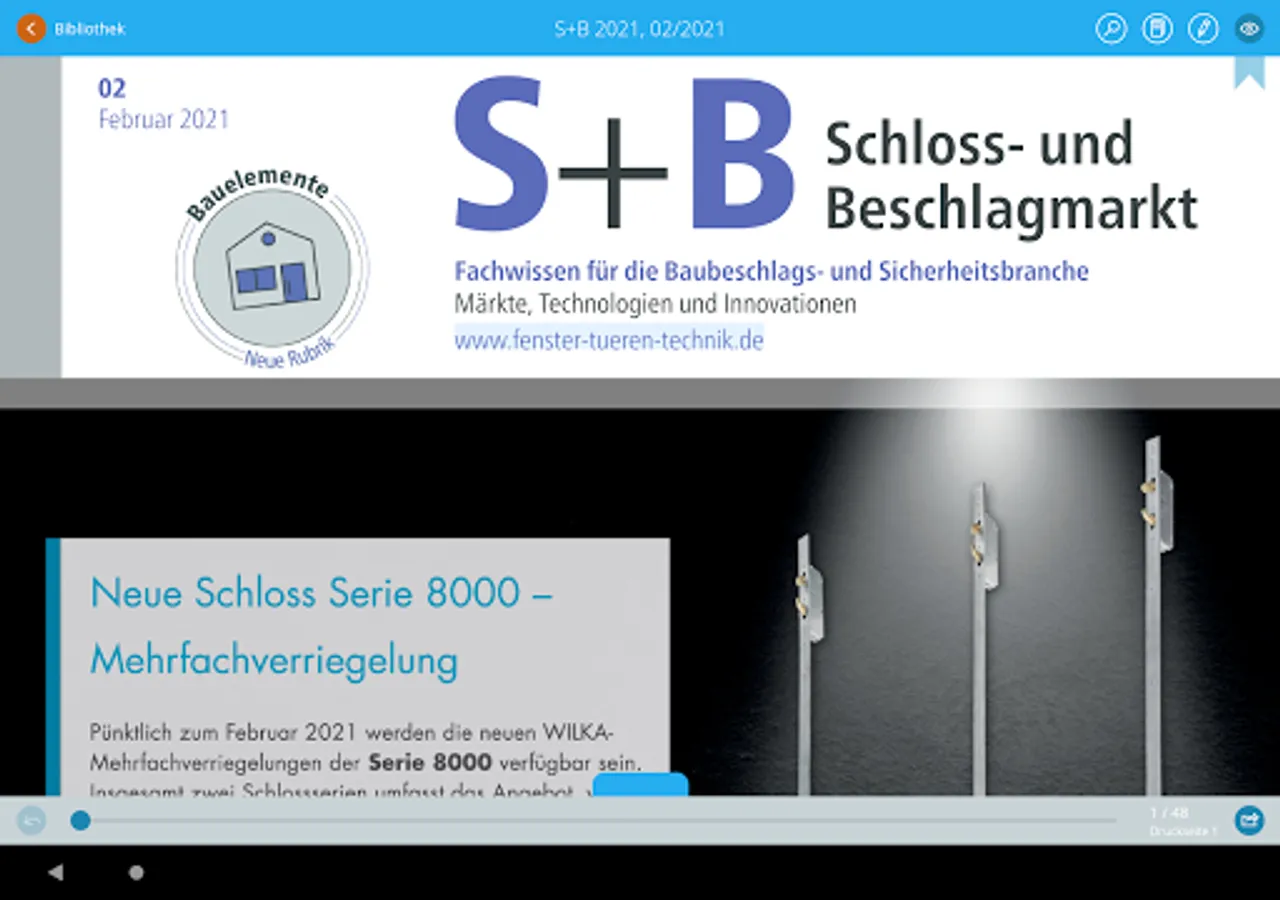 The lock and fittings market E-Paper is the business magazine for decision-makers and executives in the building fittings and security industry. The e-magazine reports directly from the important trade fairs, filters out trends and presents new technologies. The focus is on current facts and well-researched background reports from all corporate and economic sectors in the industry.
