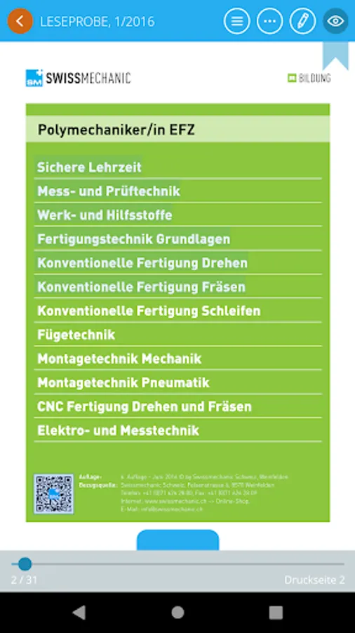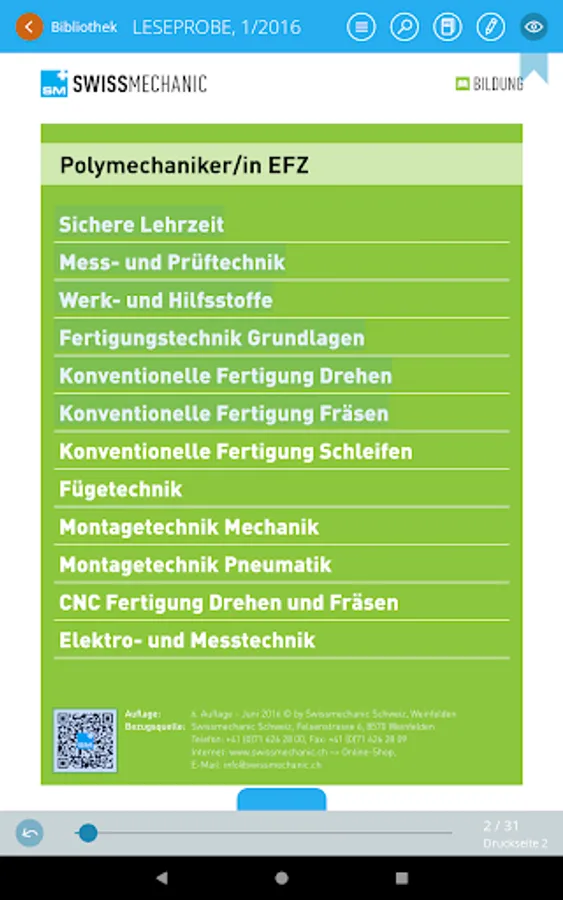 This app offers you convenient access to the well-known model course and other Swissmechanic publications.