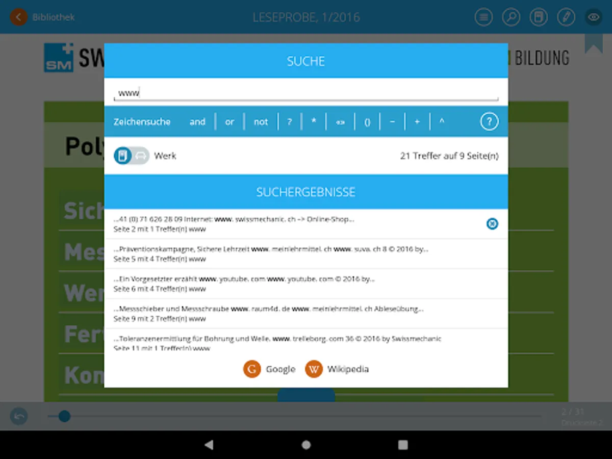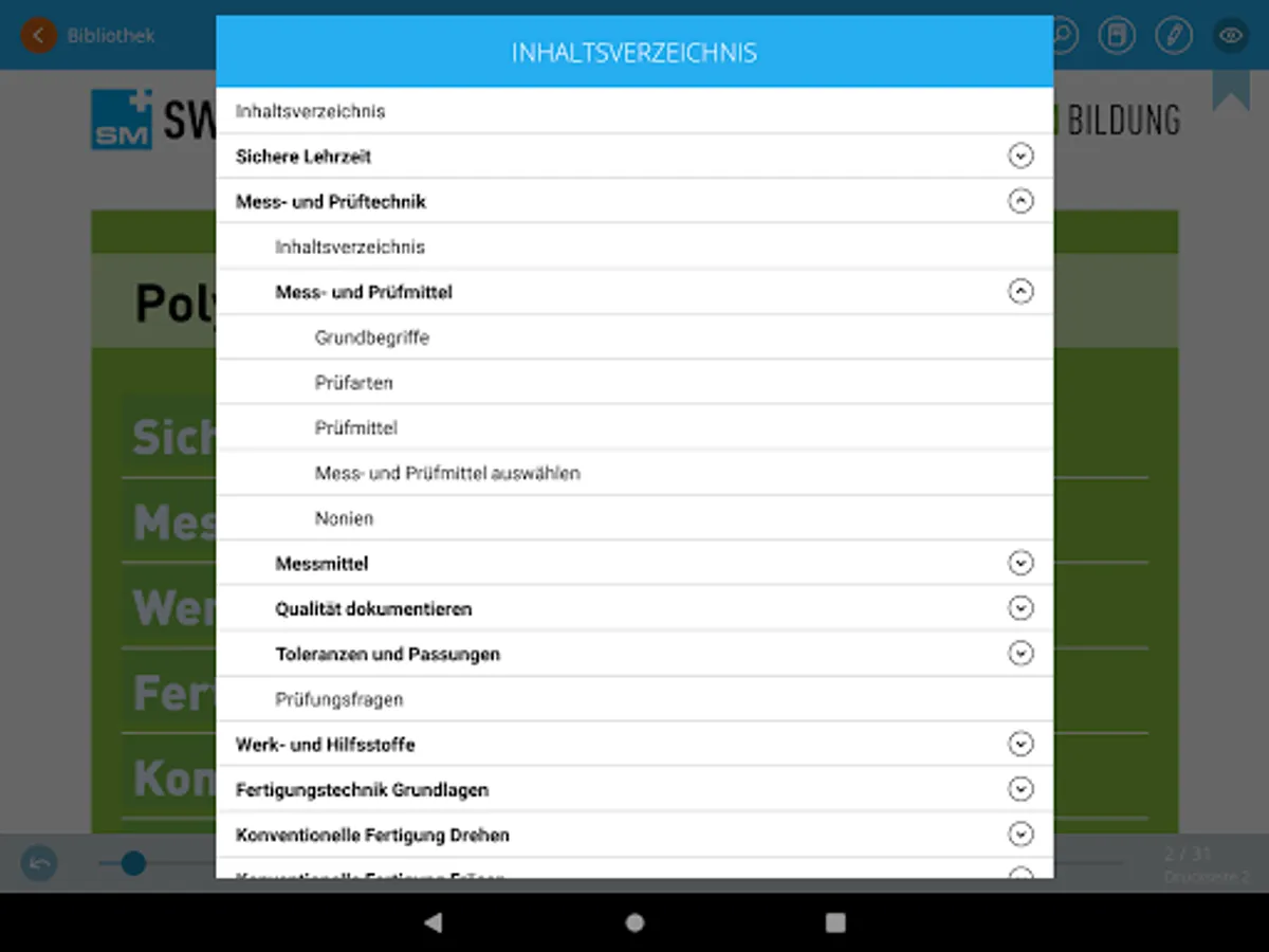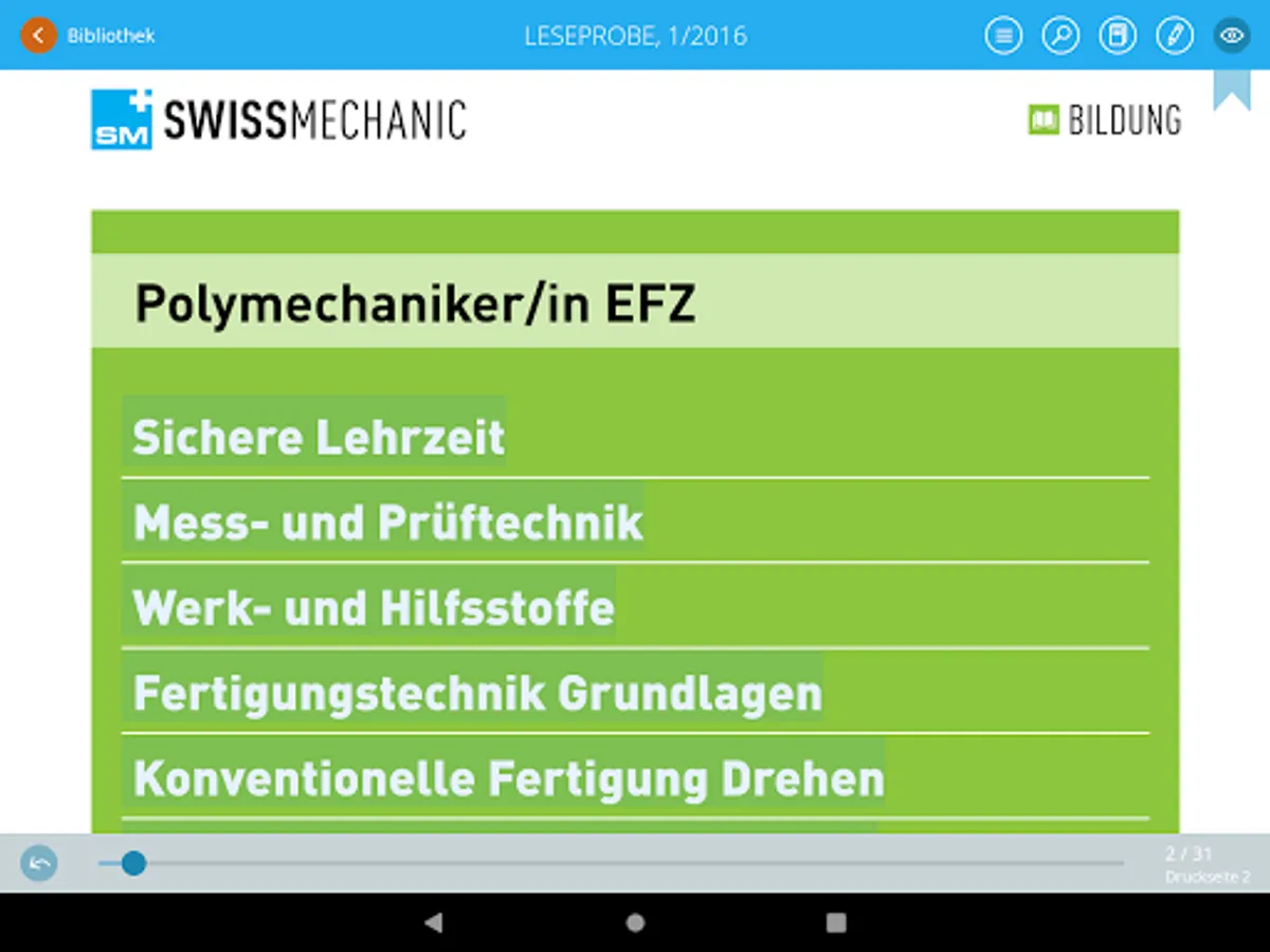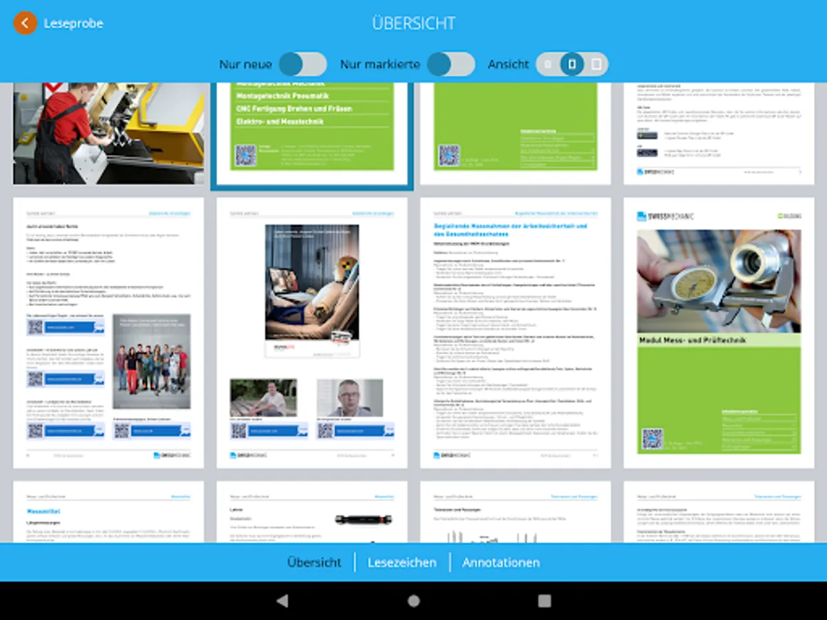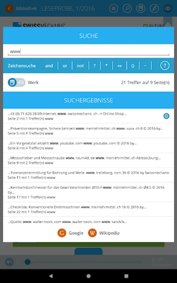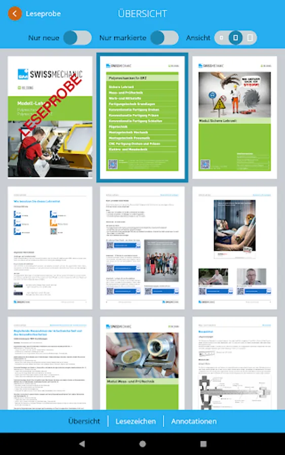 With the electronic table of contents and intelligent, rapid search, you can find your way easily around all Swissmechanic publications. You tap on a word in the teaching materials and with just one click you obtain search results direct in the teaching materials or online, as you wish.