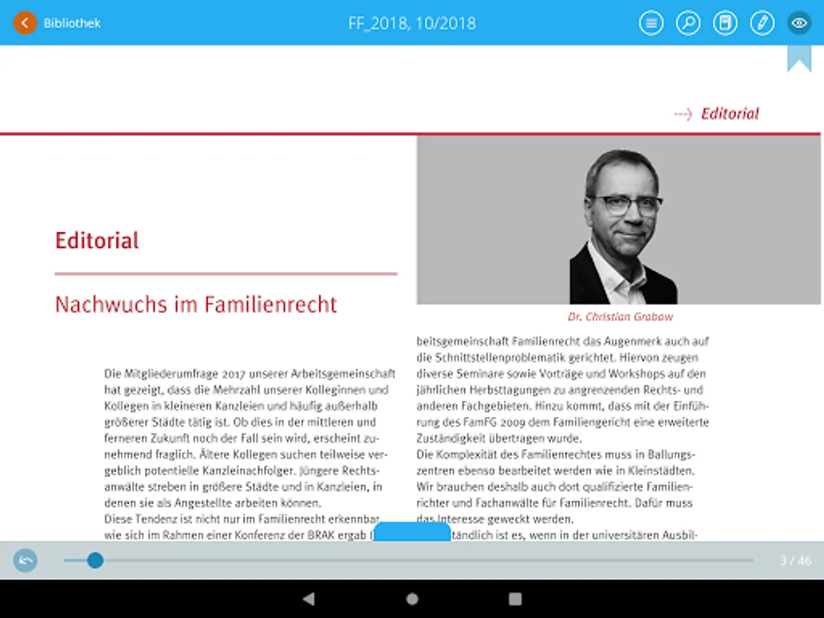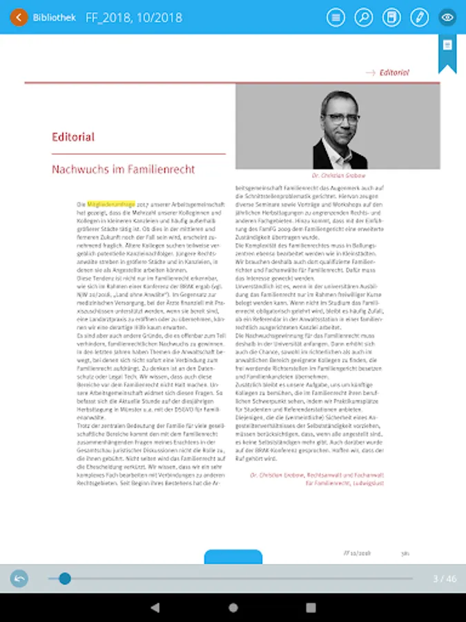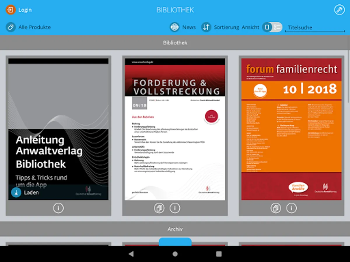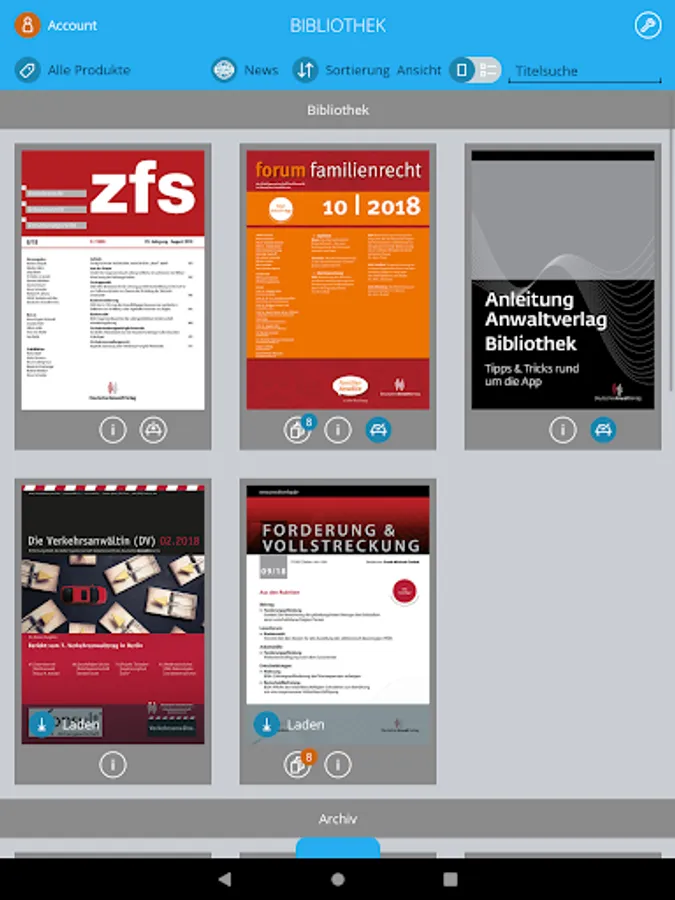 With the Anwaltverlag Library app, you can access journals and trade media of the German Bar publishing on your mobile device and read.