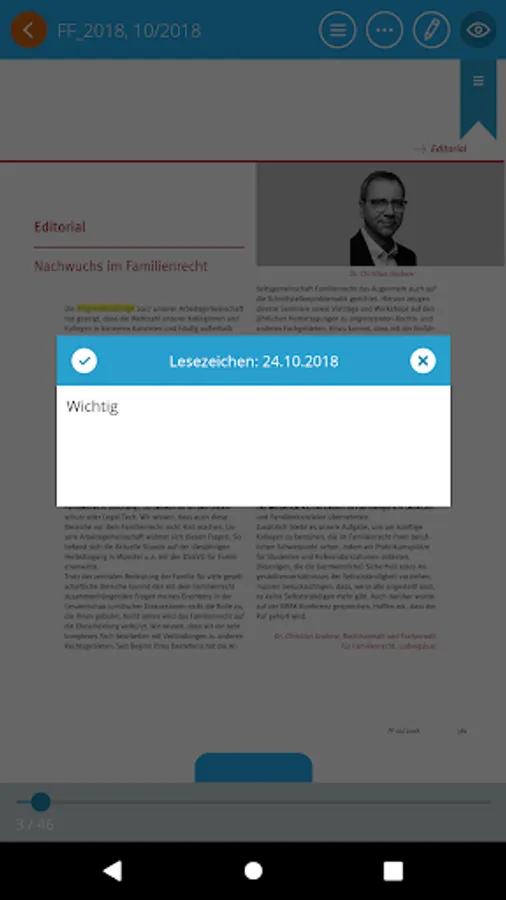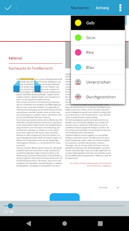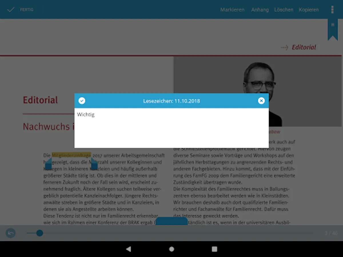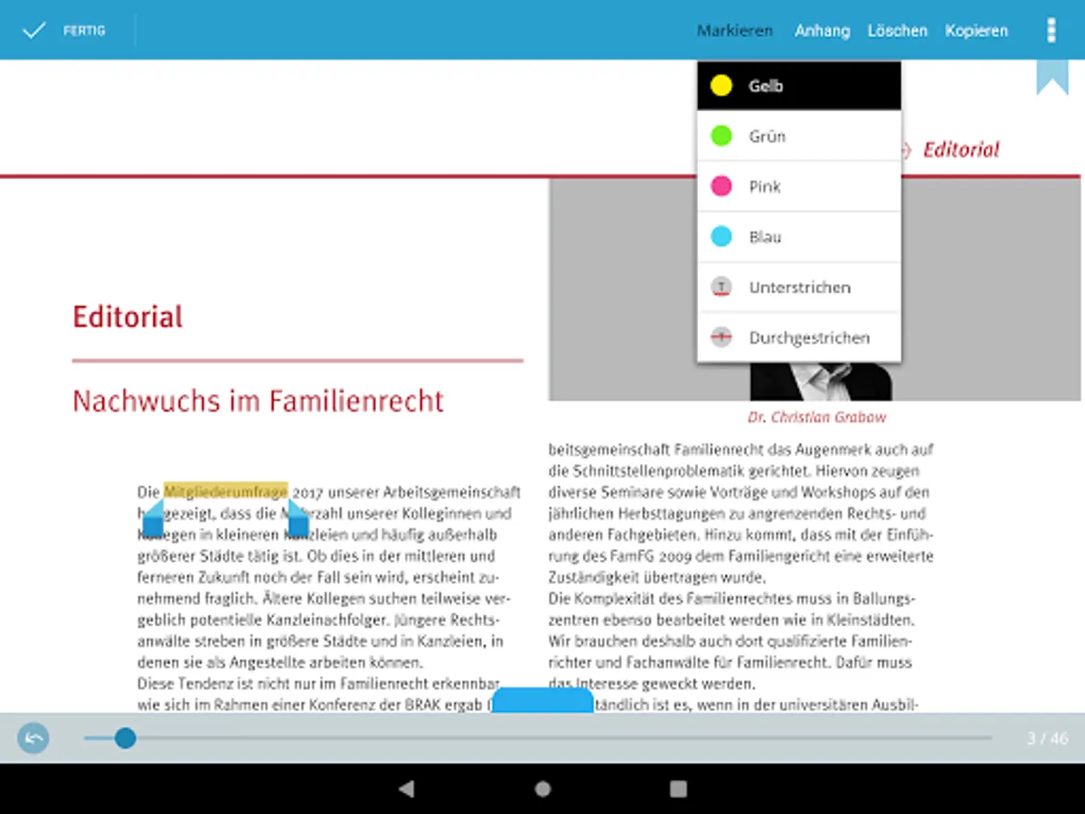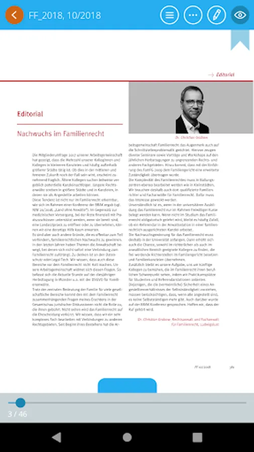 With the Anwaltverlag Library app, you can access journals and trade media of the German Bar publishing on your mobile device and read.