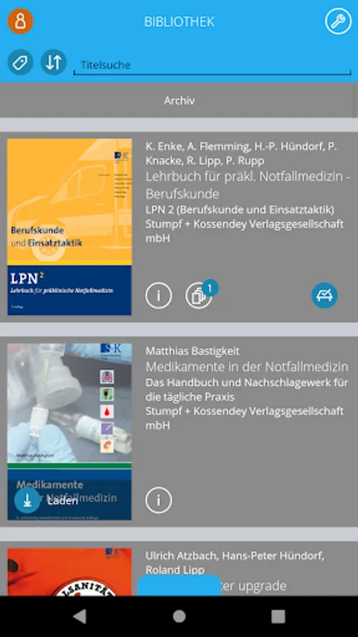 The Emergency Services Library offers a fast, cross-plant search (desktop function), the ability to insert bookmarks and annotated annotations in the form of text, images and audio commentary on any text. In this way, from the totality of the acquired publications a valuable library around the rescue professionals with powerful search functions. Downloading the app is free. Within the app paid downloads can be made. New publications (magazine and book) are available immediately for download. The downloaded content can be read offline.