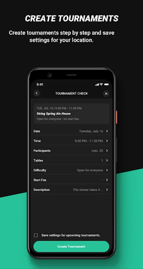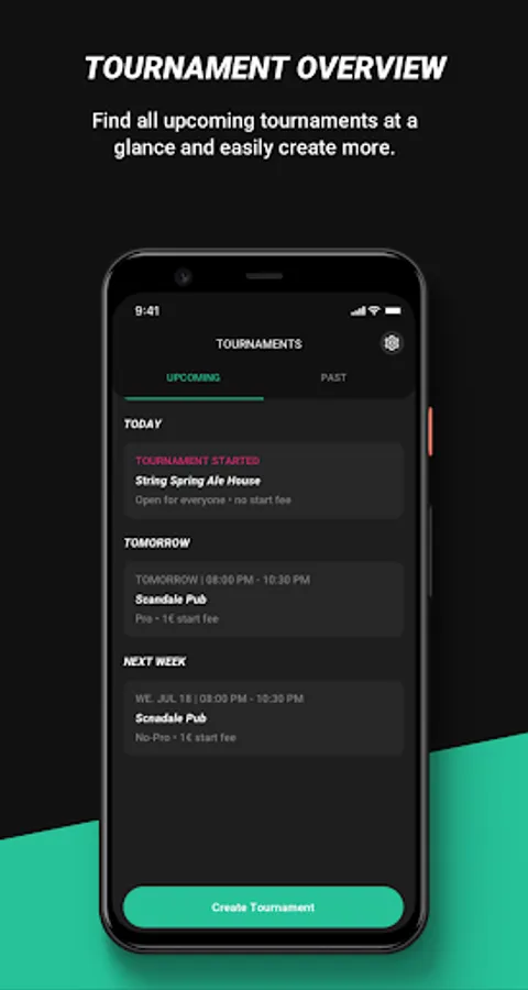 This is your key to the app. Here you can also register multiple locations and get statistics about your tournaments. We will expand this area bit by bit.