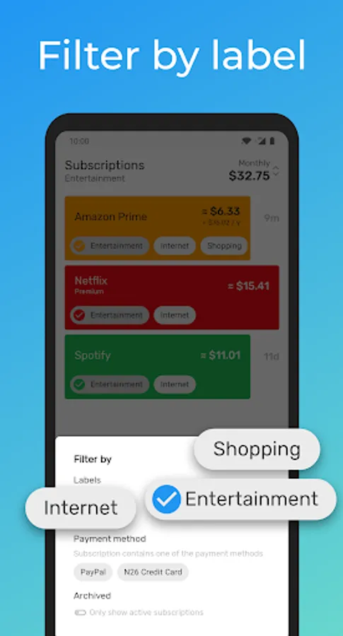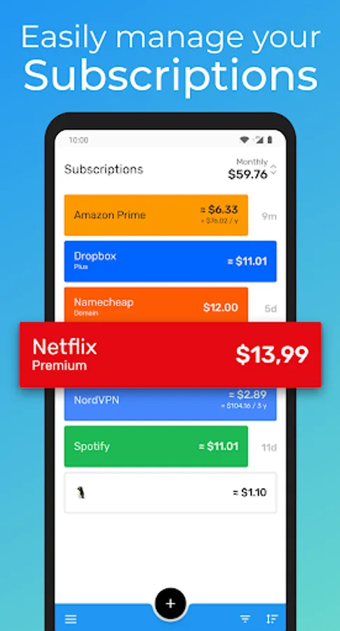 With this app, you simply enter the existing subscriptions and you have an easy overview.