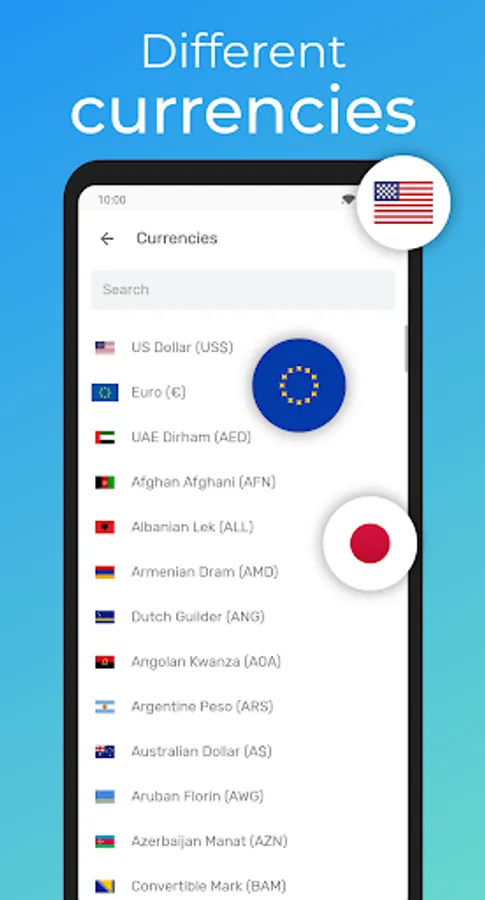 - 160+ different currencies with the current exchange rate