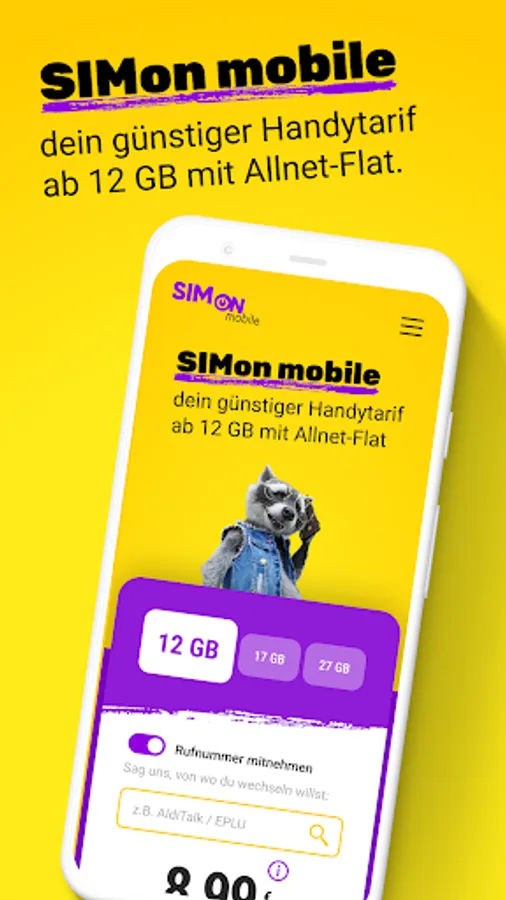 If you bring your current phone number to SIMon mobile, you will pay for 12 GB of data volume including LTE/5G with 50 Mbit/s, top D network quality, a telephone and SMS all-net flat rate as well as free EU roaming monthly from August 8th .99 euros.