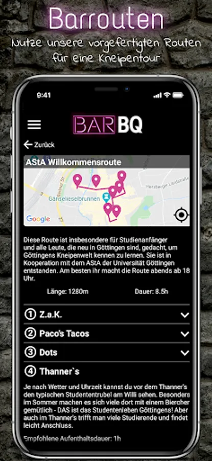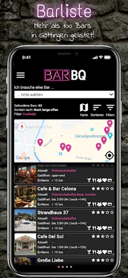 BarBQ is your personal guide through the gastro scene in Göttingen 🍹🍻🍝 Whether it's a café, pub or restaurant, with BarBQ you'll always find a suitable place to stay.