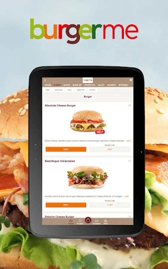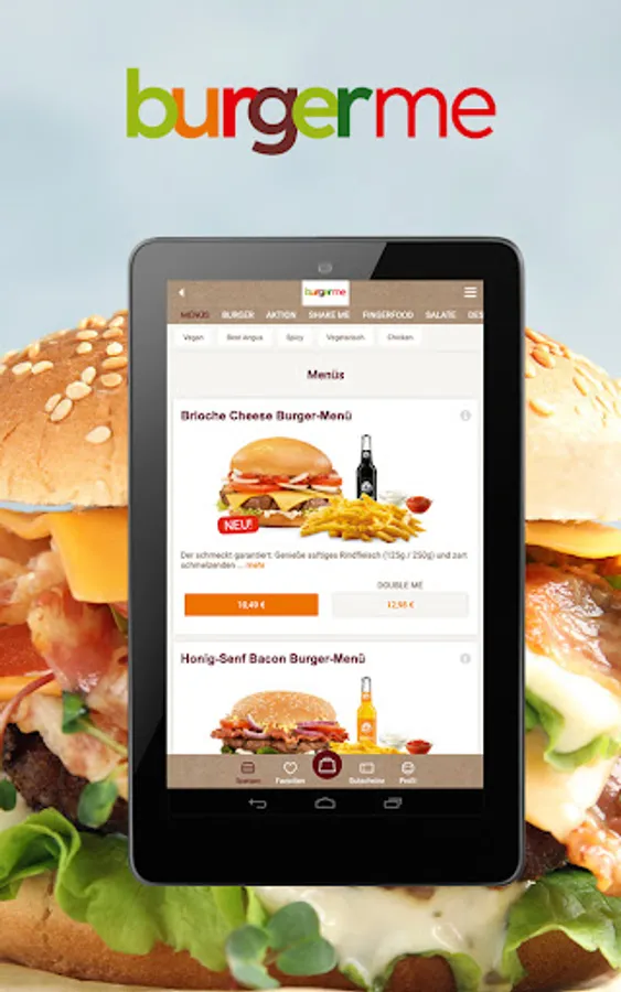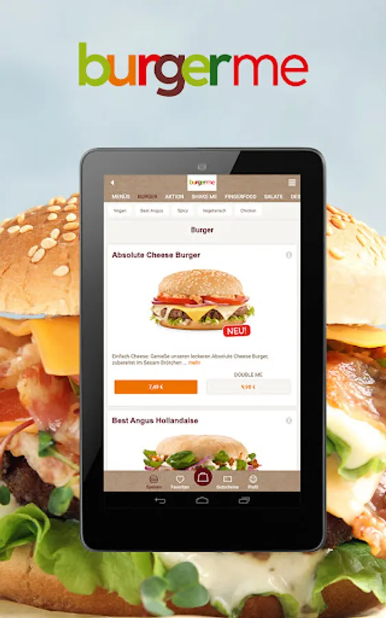 Online Burger order with your Android phone and / or tablet with our burgerme App is easy! , Burgerme store near you simply enter a postcode and away you go! You can choose from a wide selection of delicious burgers, finger food and salads choose which are freshly cooked to your order for you. In addition to our popular classics, we also present you every six weeks new burger creations in our actions. Lass' you deliver your order tasty and fast to your home or pick them out from in your store itself. Many different payment options such as Paypal, bank transfer, cash and debit card payments are available to you.