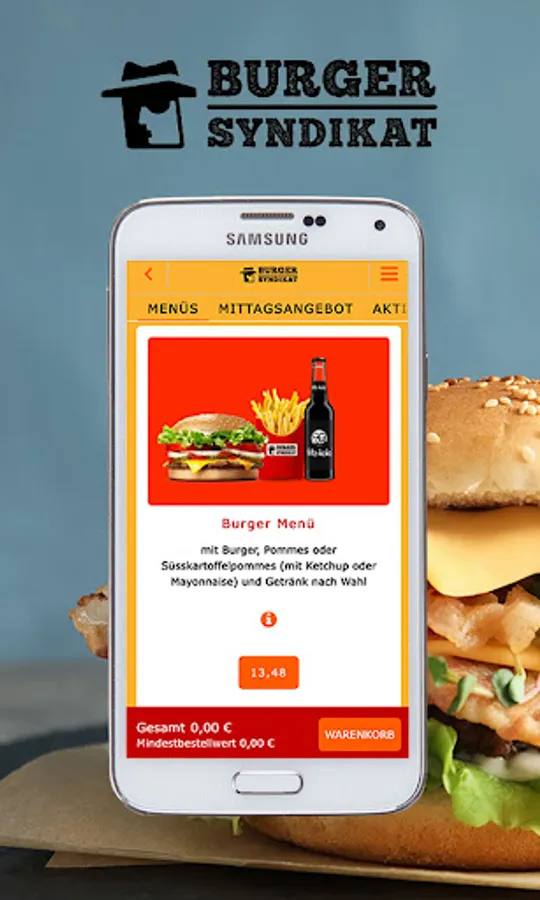 Your burger delivery service! Order food online now with the Burger Syndikat app!