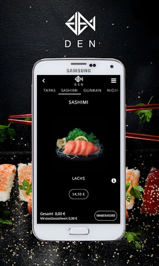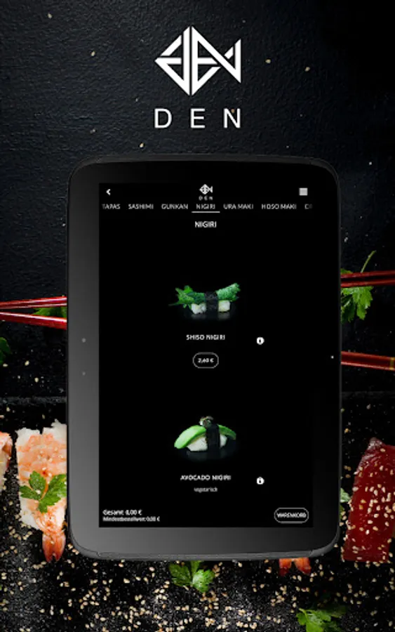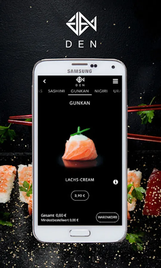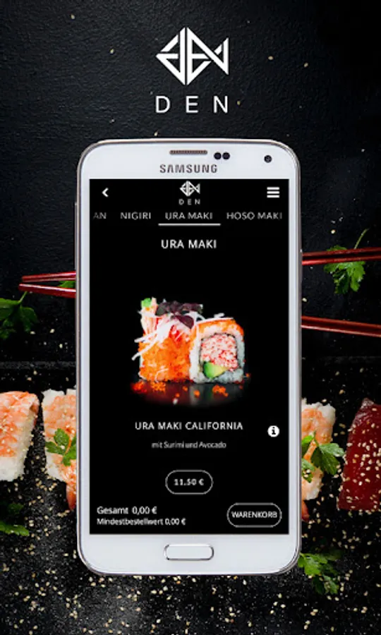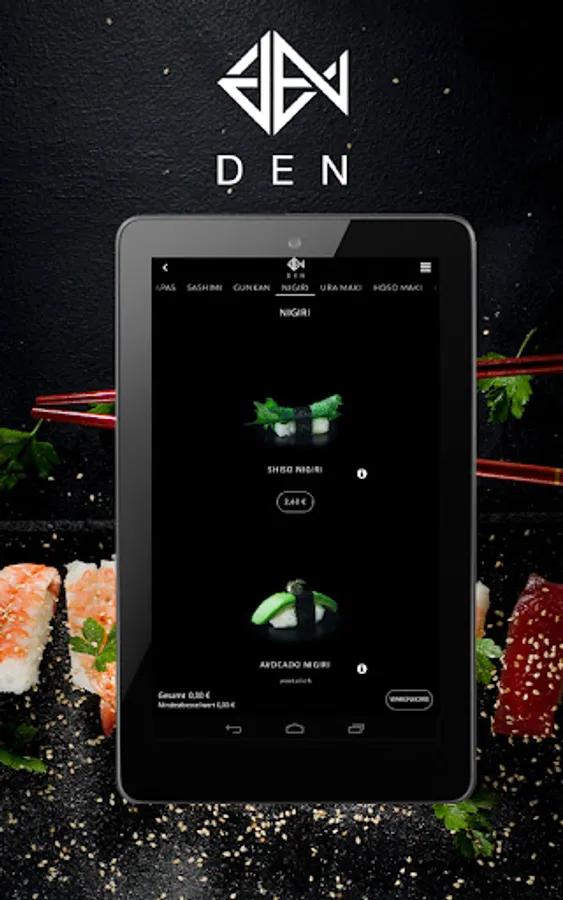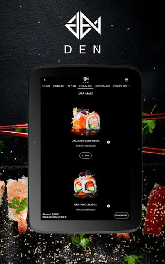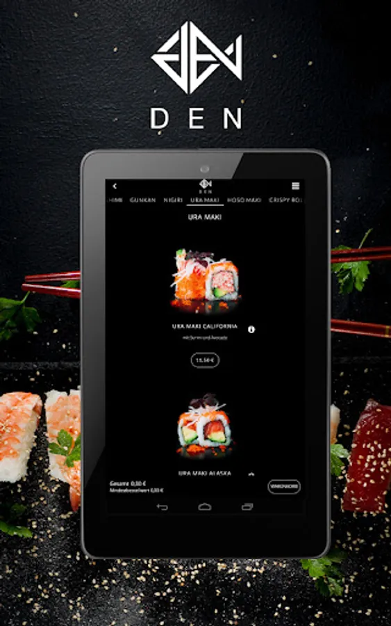 Your sushi delivery service! Order food online now with the app from DEN HOME Restaurant!