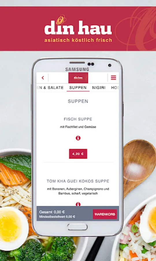 Your Asia delivery service! Order food online now with the DIN HAU app!