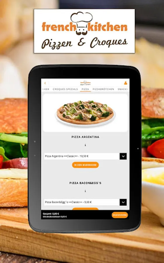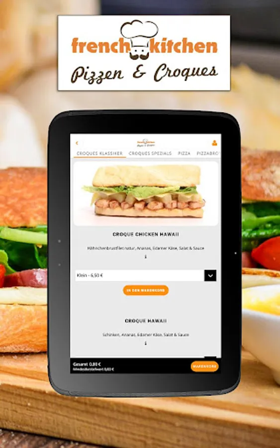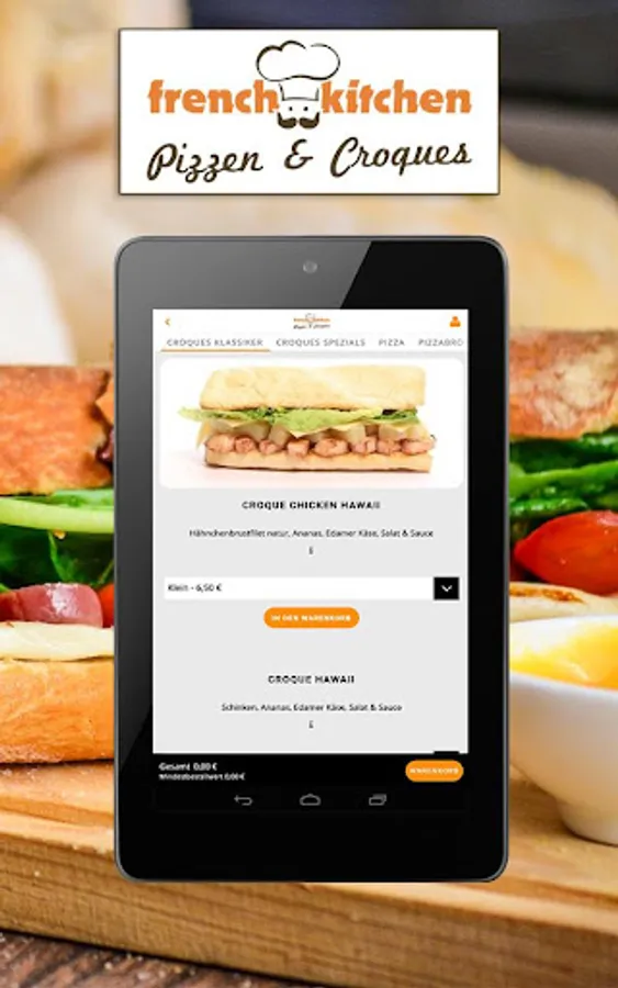 Welcome to French Kitchen! Whether freshly filled baguettes, crispy pizza or juicy burgers. Ordering delicious fast food is child's play with your smartphone / tablet and our French Kitchen app. Simply download the app and you can choose your favorites from our various dishes and menus. A real treat is e.g. our Croque Chicken Deluxe with breaded chicken breast fillet, various toppings made from lettuce, Edam cheese, fresh tomatoes and cocktail sauce. Or maybe something sweet? Then treat yourself to one of our homemade crêpes - you will definitely find the right one with us! Simply enter your address and off you go! The ordering process is very easy thanks to your French Kitchen app and delivery is fast. So you can receive your favorite dishes at the door in no time and your hunger is quickly satisfied. Have your order delivered directly to your home or collect it yourself from us in Henstedt-Ulzburg.