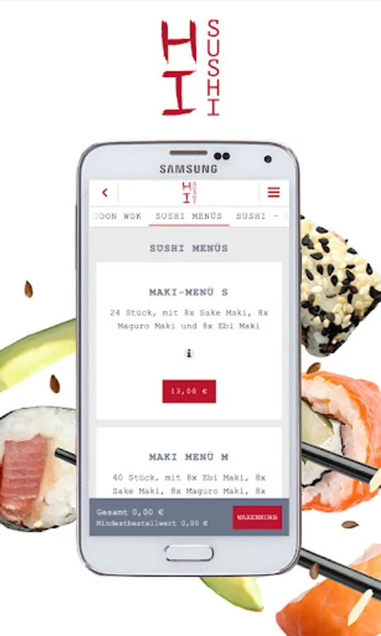 Your sushi delivery service! Order food online now with the Hi Sushi app!
