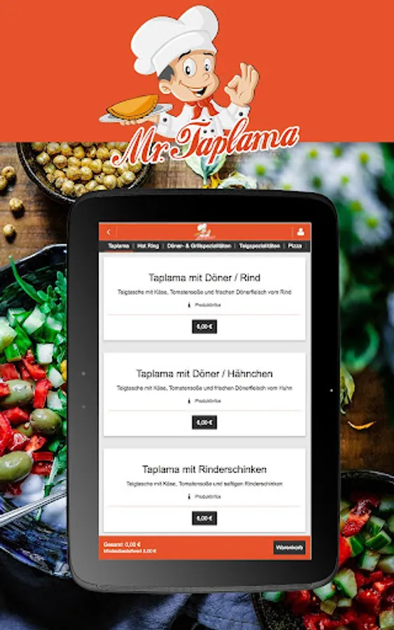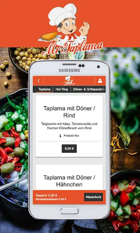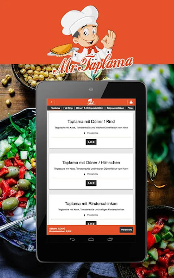 Order now from our large variety of kebabs and Teigspezialitäten. order online Turkish specialties is easy with your Android phone and / or tablet and our MrTaplama app! Simply enter your address and off you go!