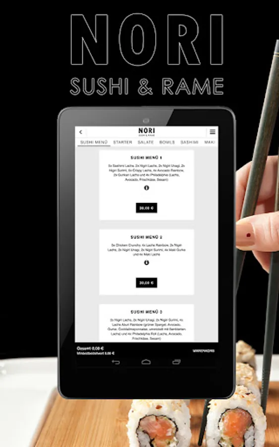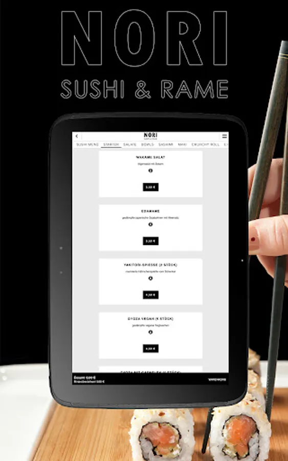 Welcome to NORI. If you love sushi, you've come to the right place. Japanese cuisine reinvents itself again and again, is healthy and surprises with creativity and unique taste with every order. Discover a wide variety of specialties with the NORI app, from classic maki and nigiri rolls to our in-house creations - made from fresh fish or entirely vegetarian. There is something for every taste on our menu! Simply download the app, enter the address and you can enjoy finely prepared sushi of the best quality. The ordering process is very easy and delivery is fast. So you don't have to wait long for your favorite dishes and your hunger will be satisfied quickly. Have your order delivered quickly to your home or pick it up yourself at our restaurant in Leipzig.