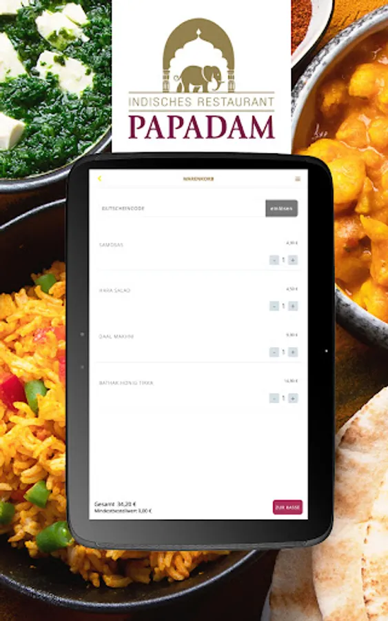 With our new Papadam app this is child's play. Just enter your address and off you go! The ordering process is very easy and delivery is fast. So you never have to wait long for your favorite dishes and have them right on your doorstep without any detours. Have your order delivered directly to your home or pick it up yourself at our restaurant in Berlin.