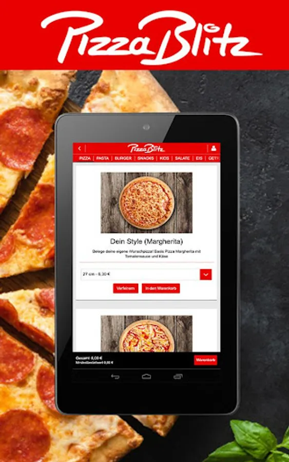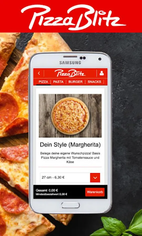 Ordering pizza online is child's play with your Android phone and / or tablet and our Pizza Blitz Schwandorf app. Simply enter the address and you can enjoy freshly made pizza from the stone oven, various pasta dishes, casseroles and salads. Simply enter your address and off you go! The ordering process is very easy thanks to your app and delivery is fast. So you have your favorite dishes on the door in no time and your hunger is quickly satisfied. Have your order delivered quickly to your home or pick it up yourself at Pizza Blitz Schwandorf.