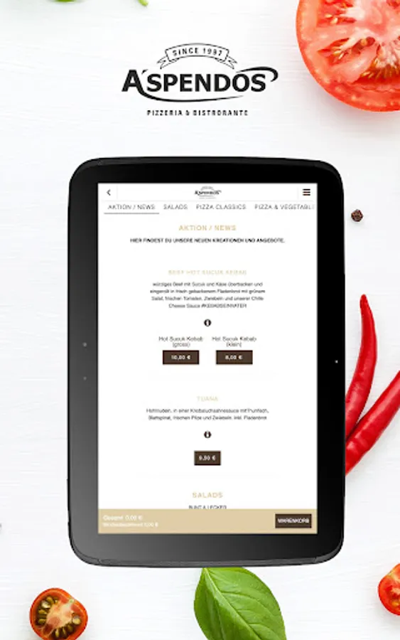 Order pizza & more online with Pizzeria Aspendos - easy and delicious!