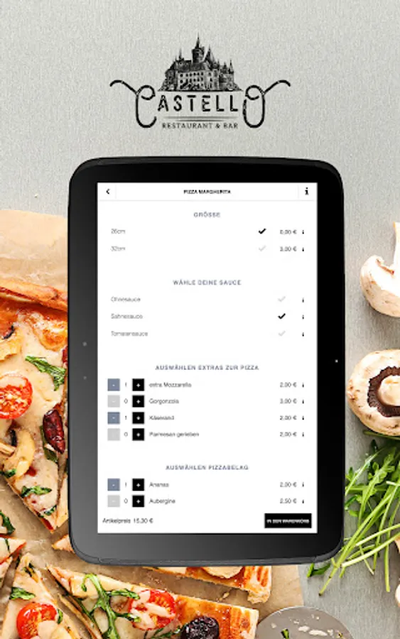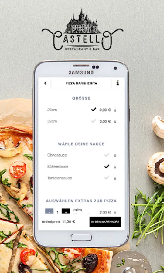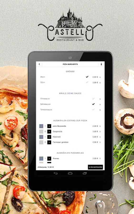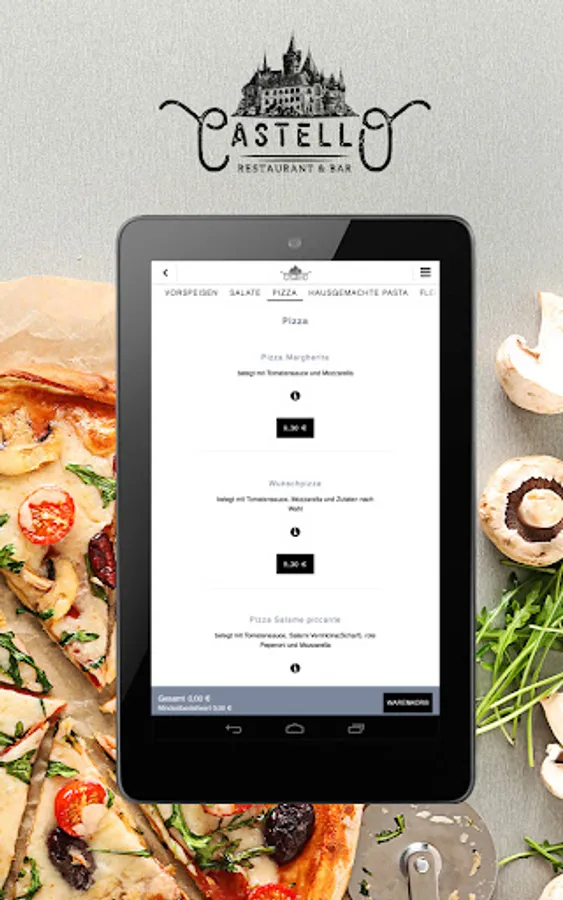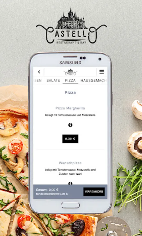 Your pizza delivery service! Order food online now with the Restaurant Castello app!