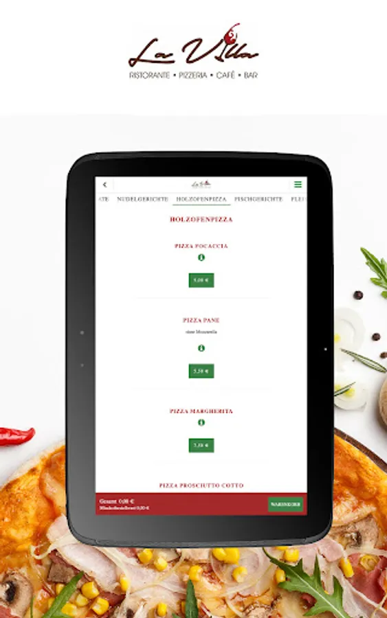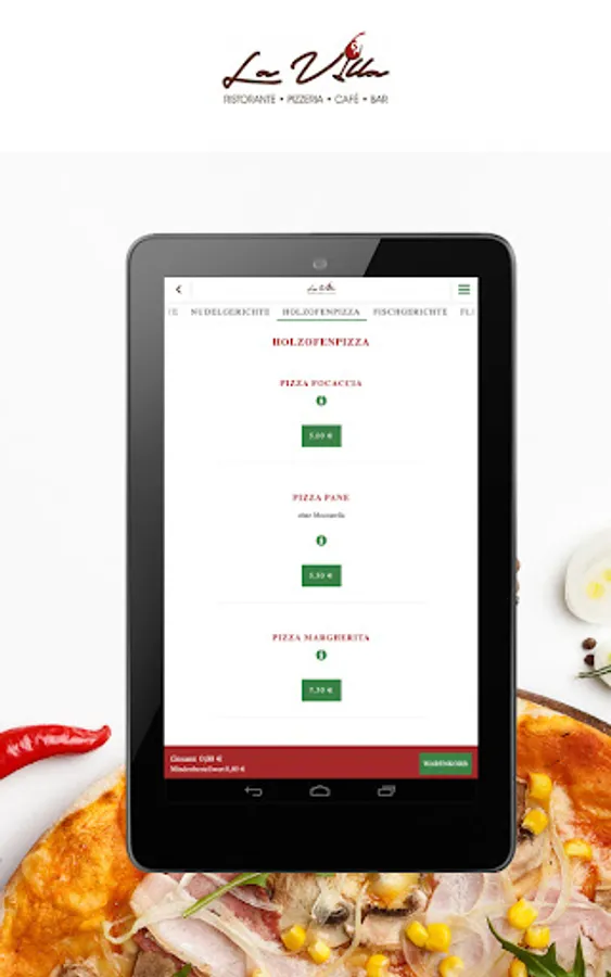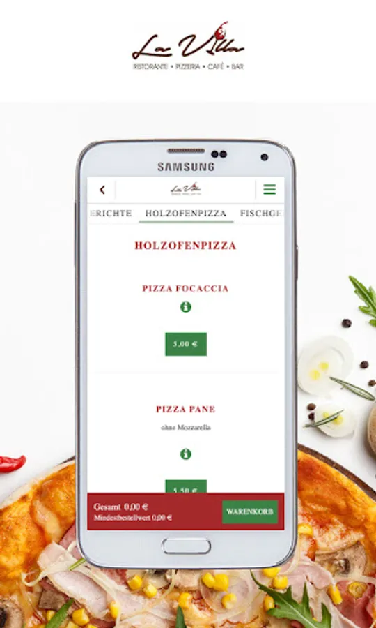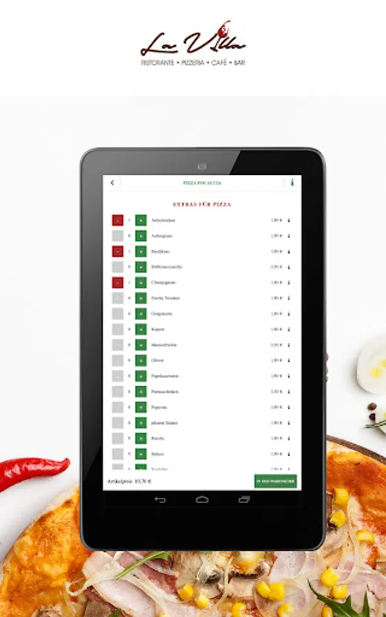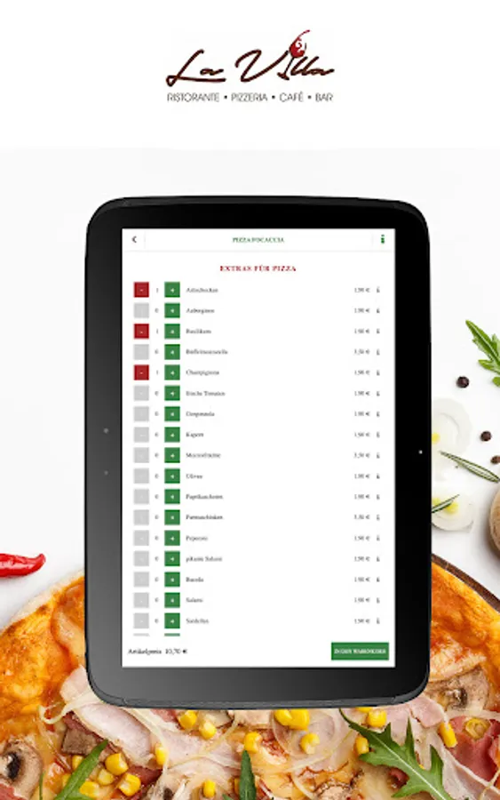 Your pizza delivery service! Order food online now with the Restaurant La Villa app!