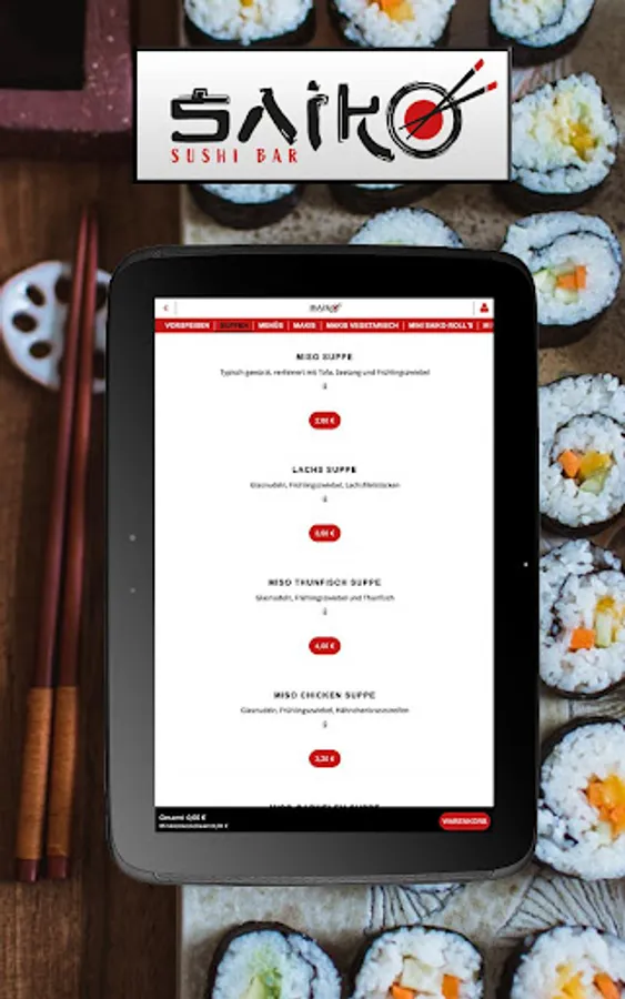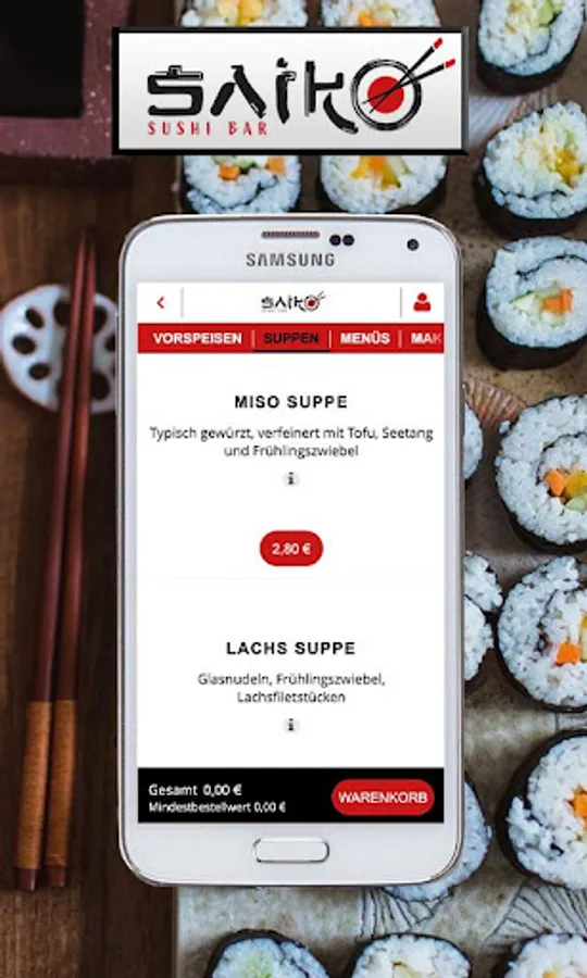 Welcome to the Saiko Sushi Bar. If you love sushi, you've come to the right place. All dishes are freshly prepared for you every day - from finely prepared fish or vegetarian. Discover a wide variety of specialties with the Saiko Sushi App, from classic maki and nigigri rolls to our in-house creations. Simply download the Saiko app, enter the address and you can enjoy traditional sushi of the highest quality. The ordering process is very easy thanks to your app and delivery is fast. So you can receive your favorite dishes at the door in no time and your hunger is quickly satisfied. Have your order delivered quickly to your home or pick it up yourself in our Berlin restaurant.