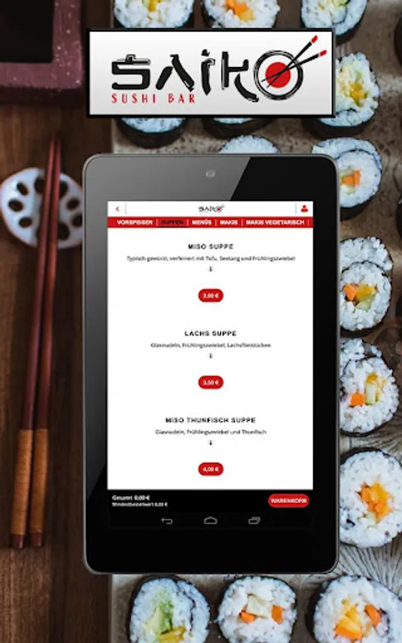 Your sushi delivery service! Order food online now with the Saiko Sushi app!