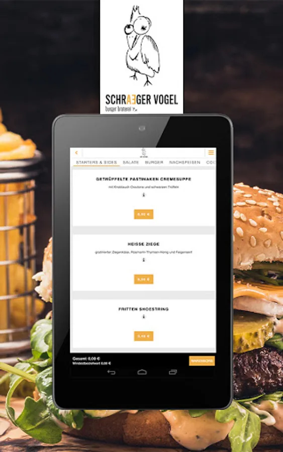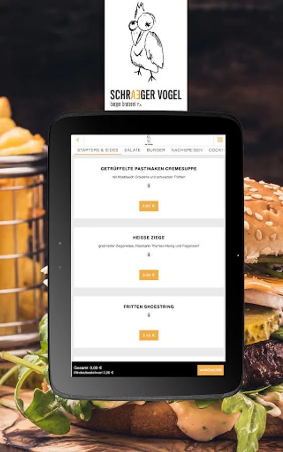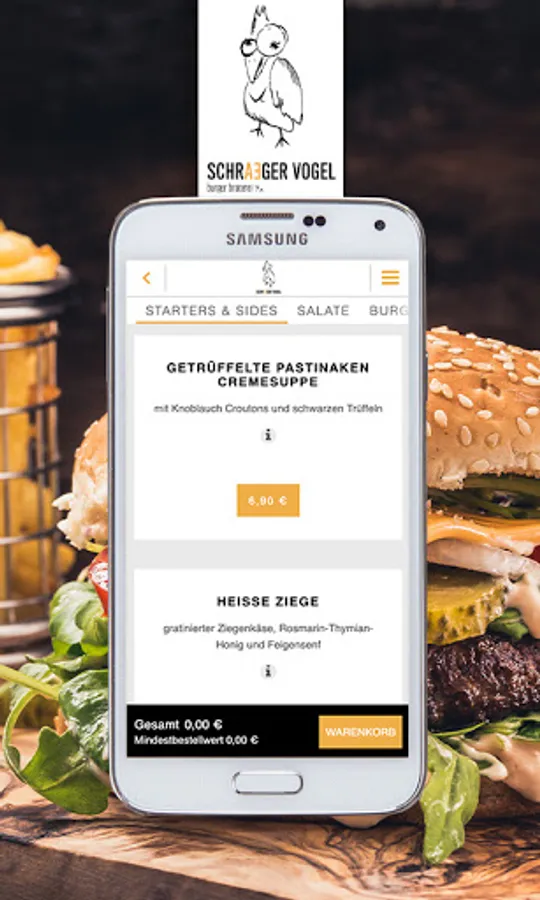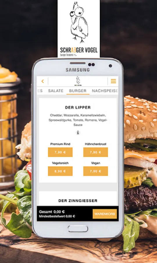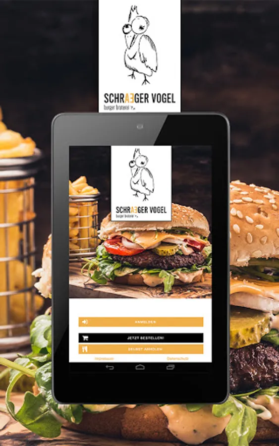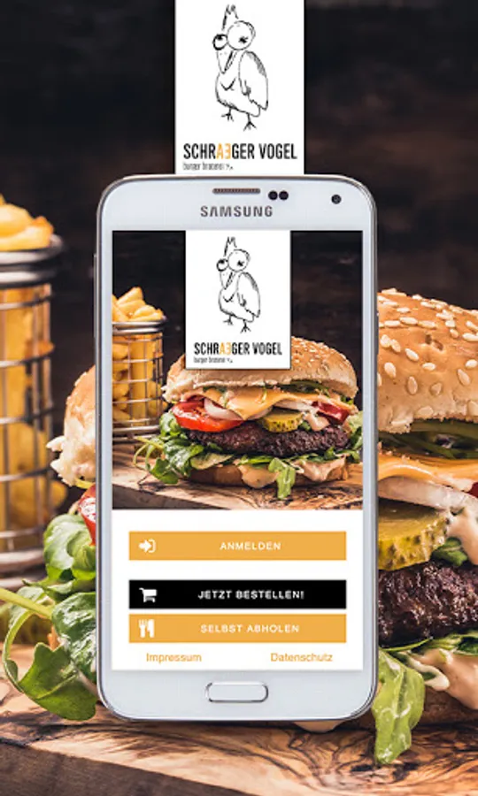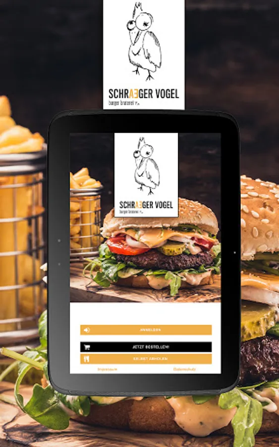 Your burger delivery service! Order food online now with the SCHRAEGER VOGEL app!