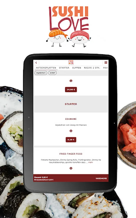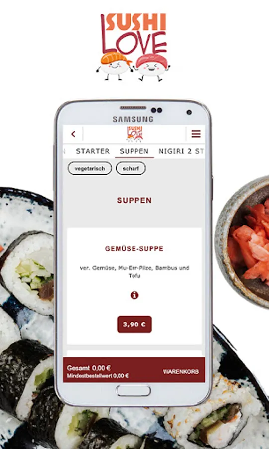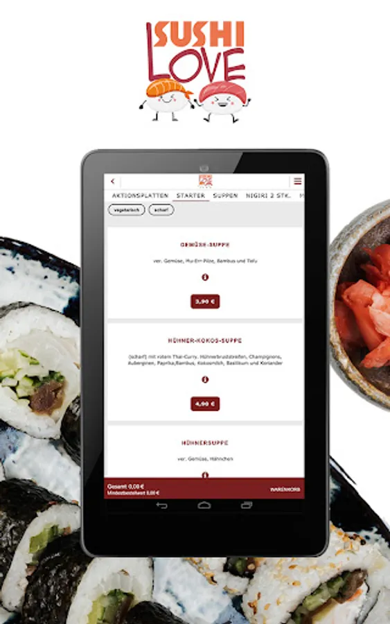 Your sushi delivery service! Order food online now with the Sushi Love app!