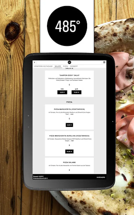 Welcome to 485Grad! If you love Italian cuisine, you've come to the right place. Here you will find everything your heart (or your stomach) desires, from oven-fresh pizza to various antipasti icons and homemade dolci. According to the original recipe, freshly prepared and in a large selection. Have a look and see for yourself. At 485 degrees we only use fresh ingredients, high-quality oils and homemade doughs and sauces. Quality like in Italy - we bring it to your doorstep. Simply enter your address and off you go! The ordering process is very easy thanks to your app and gives you the choice between pick-up and delivery. So you don't have to wait long for your favorite dishes and your hunger will be satisfied quickly. Have your order delivered quickly or pick it up yourself from one of our restaurants in Cologne.