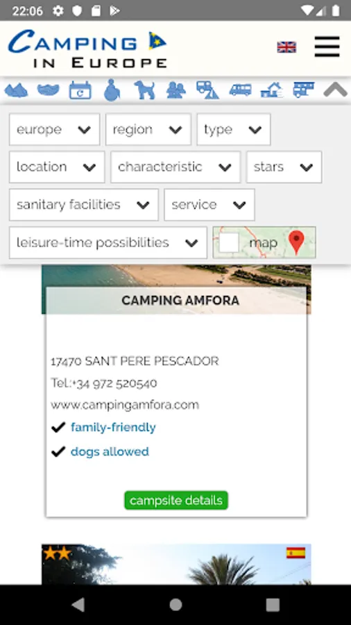 "Camping in Europe" is aimed at those interested in camping who are looking for suitable campsites throughout Europe. Logical, intuitive operation makes it easy to search, find and contact the right places.