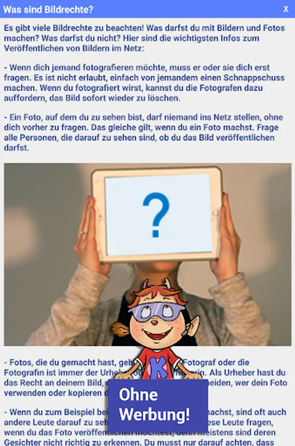 The app conveys knowledge on the safe use of digital media, provides child-friendly information on exciting topics and provides entertaining puzzle games.