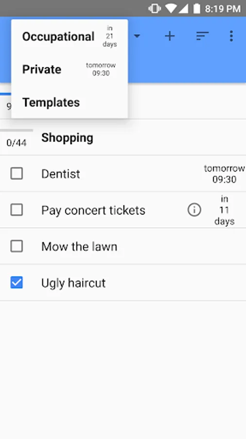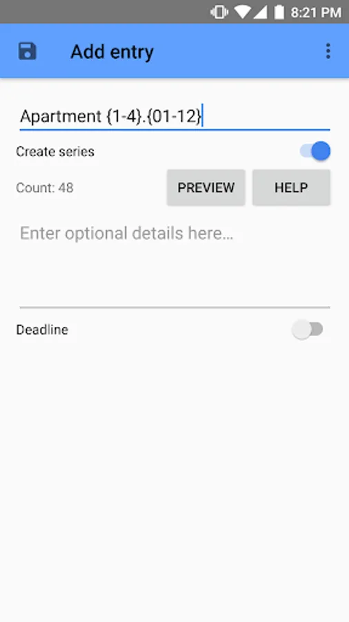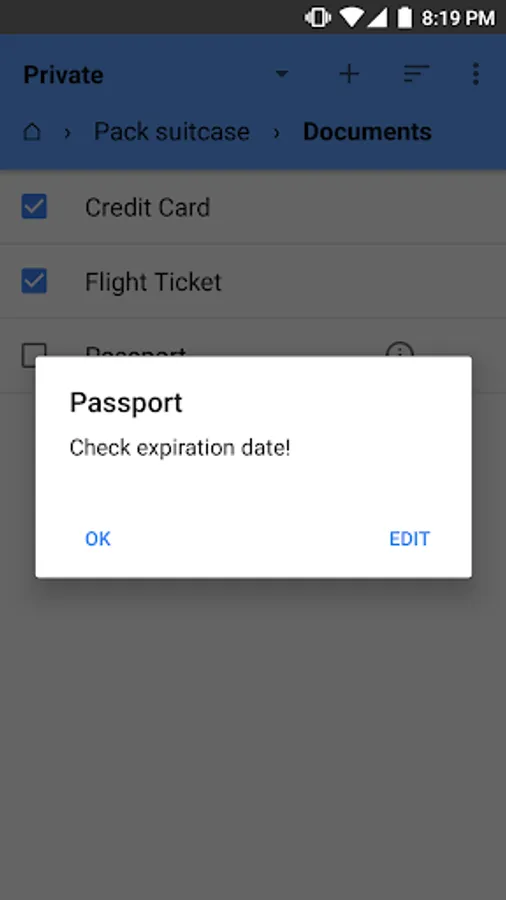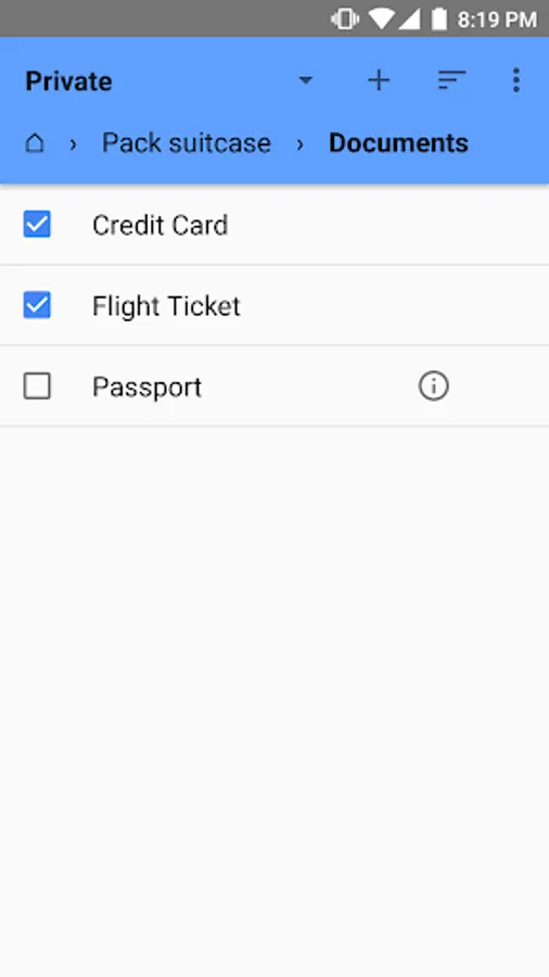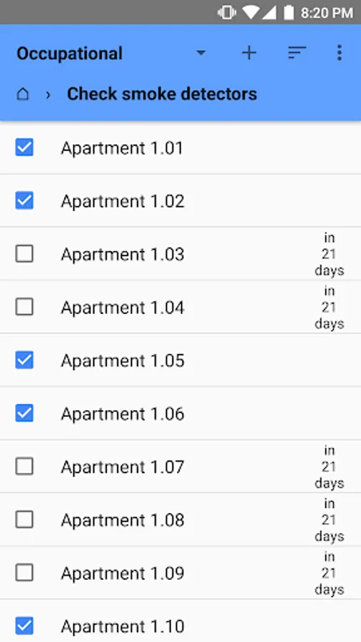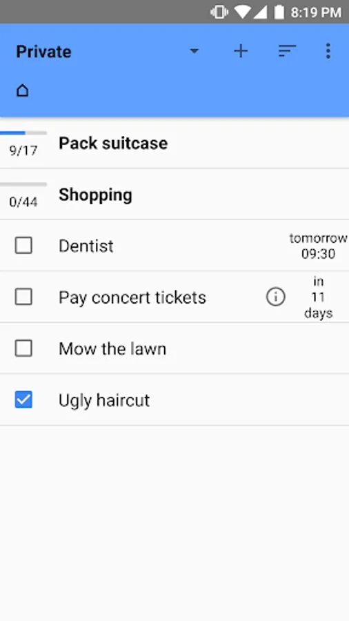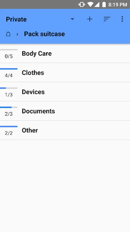 Organize your checklists / to-do lists in subfolders. Progress bars show the percentage of checked entries in a folder and all of its subfolders. Assign (optional) deadlines to individual entries and add detailed descriptions. Quickly create series of similar folders / entries by adding number ranges to the title, e.g. "Apartment {1-4}.{01-12}" to create 48 entries for 4 floors with 12 apartments each.