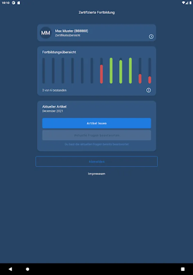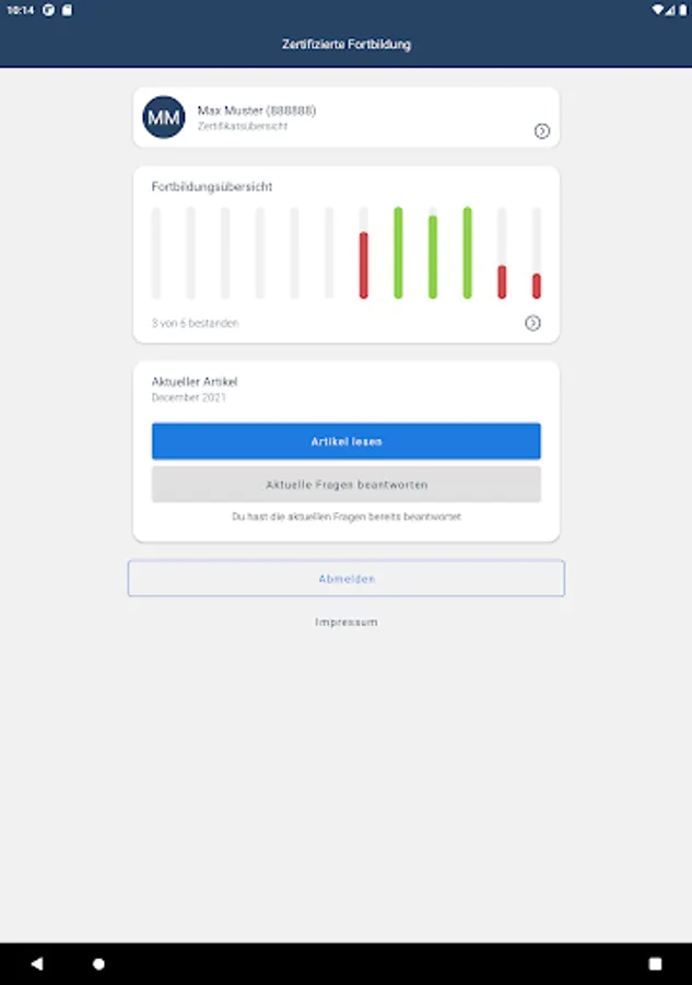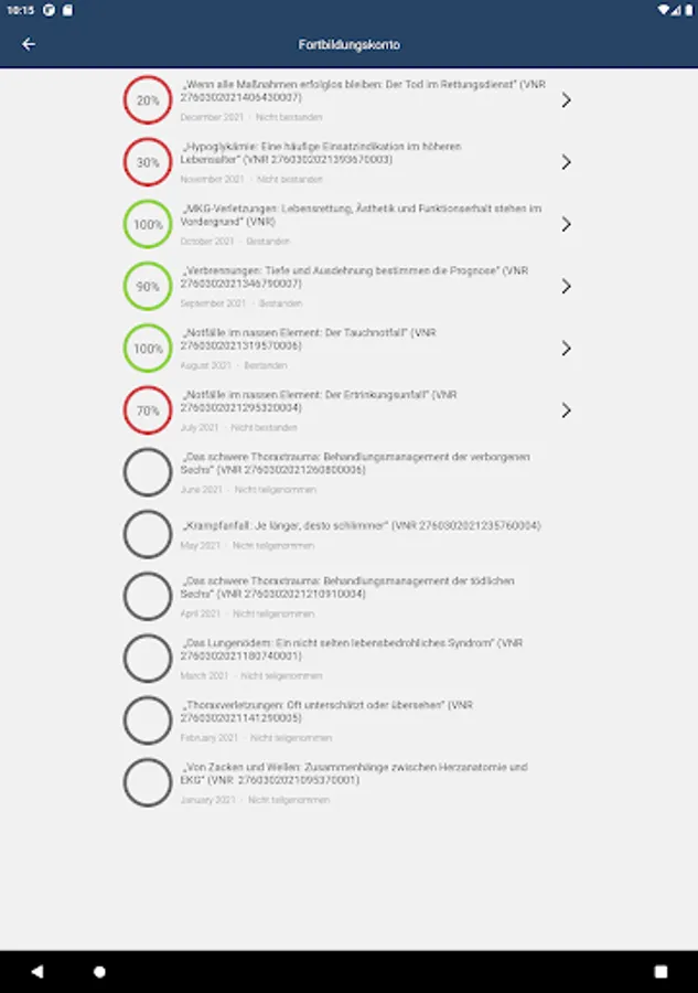 The app for certified advanced training from the RETTUNGSDIENST magazine. This means that you can now easily complete your monthly training on the go. In addition to the 10 monthly questions, you can also read the corresponding training article from the RETTUNGSDIENST magazine in the app and follow your progress in the practical overview. You can also download your personal evaluation every month.
