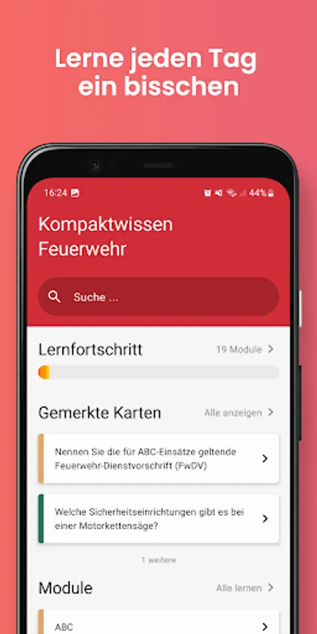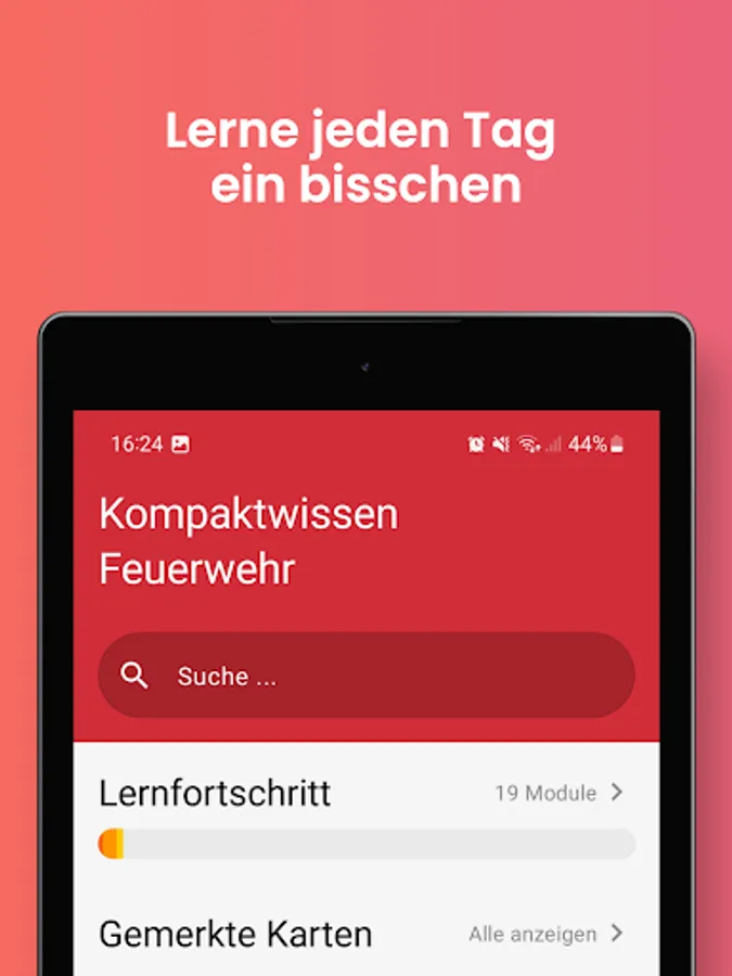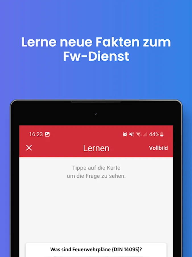 Simple learning app for the basic knowledge of the fire brigade. Full-time and volunteer firefighters can use it to test and consolidate their knowledge from basic training. With the 19 themed modules, you can ideally prepare for training as a platoon or association leader.