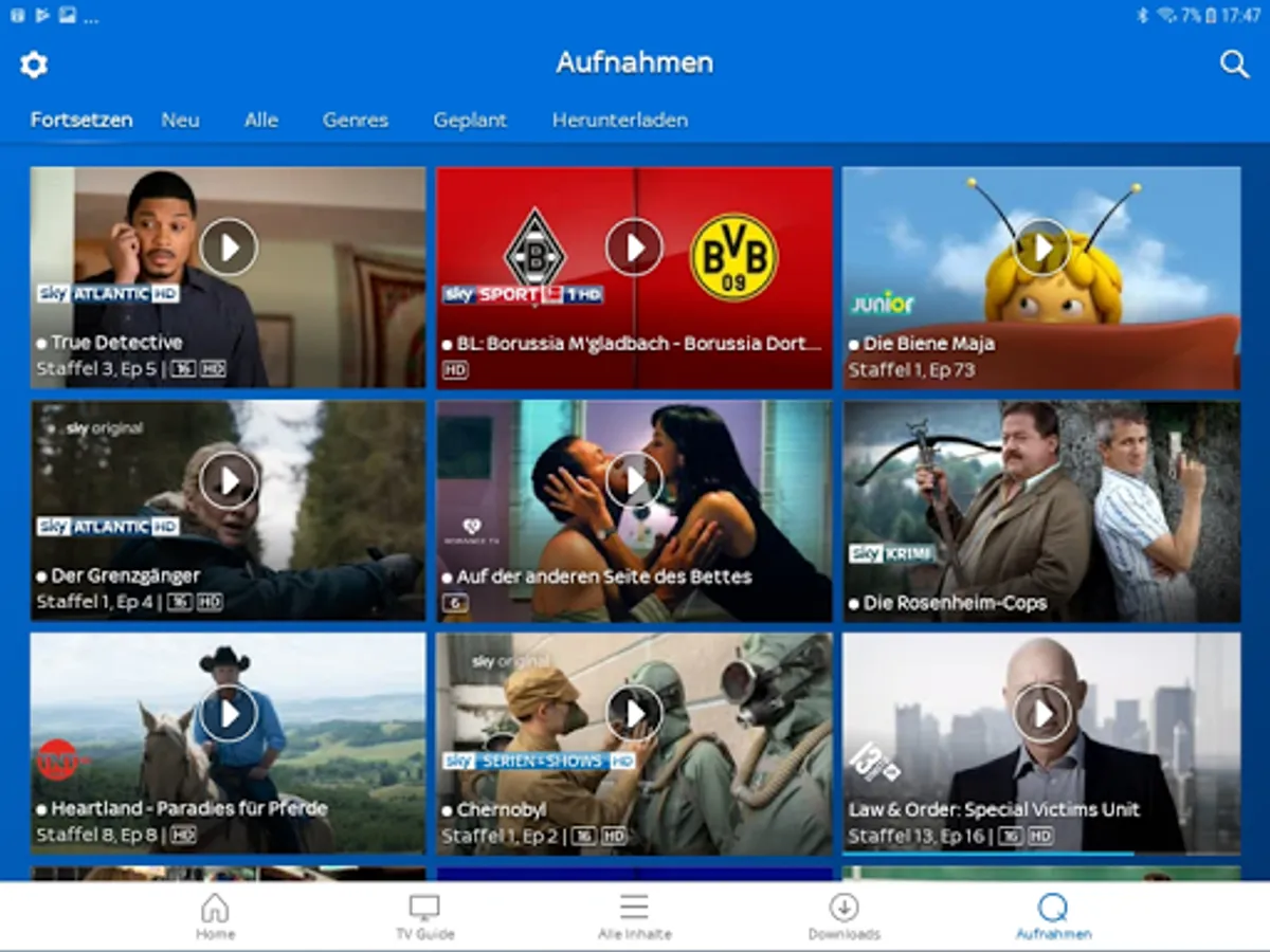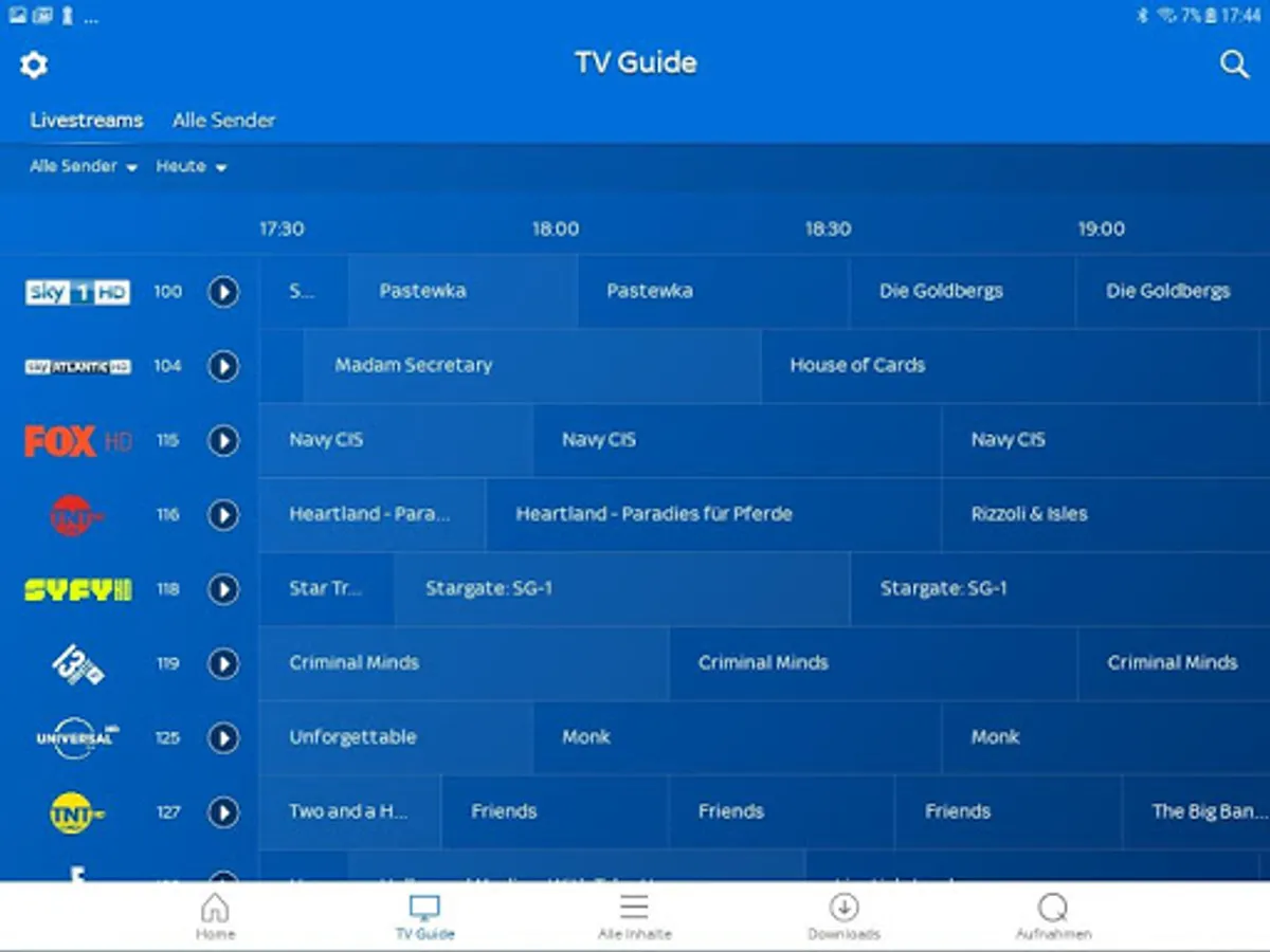 To receive the Sky program via smartphone, tablet or PC / Mac app, a Sky subscription is required. The visible content depends on the subscribed packages and the availability on the device. The use requires a connection to the Internet via WLAN or a mobile data connection, which can lead to further costs.