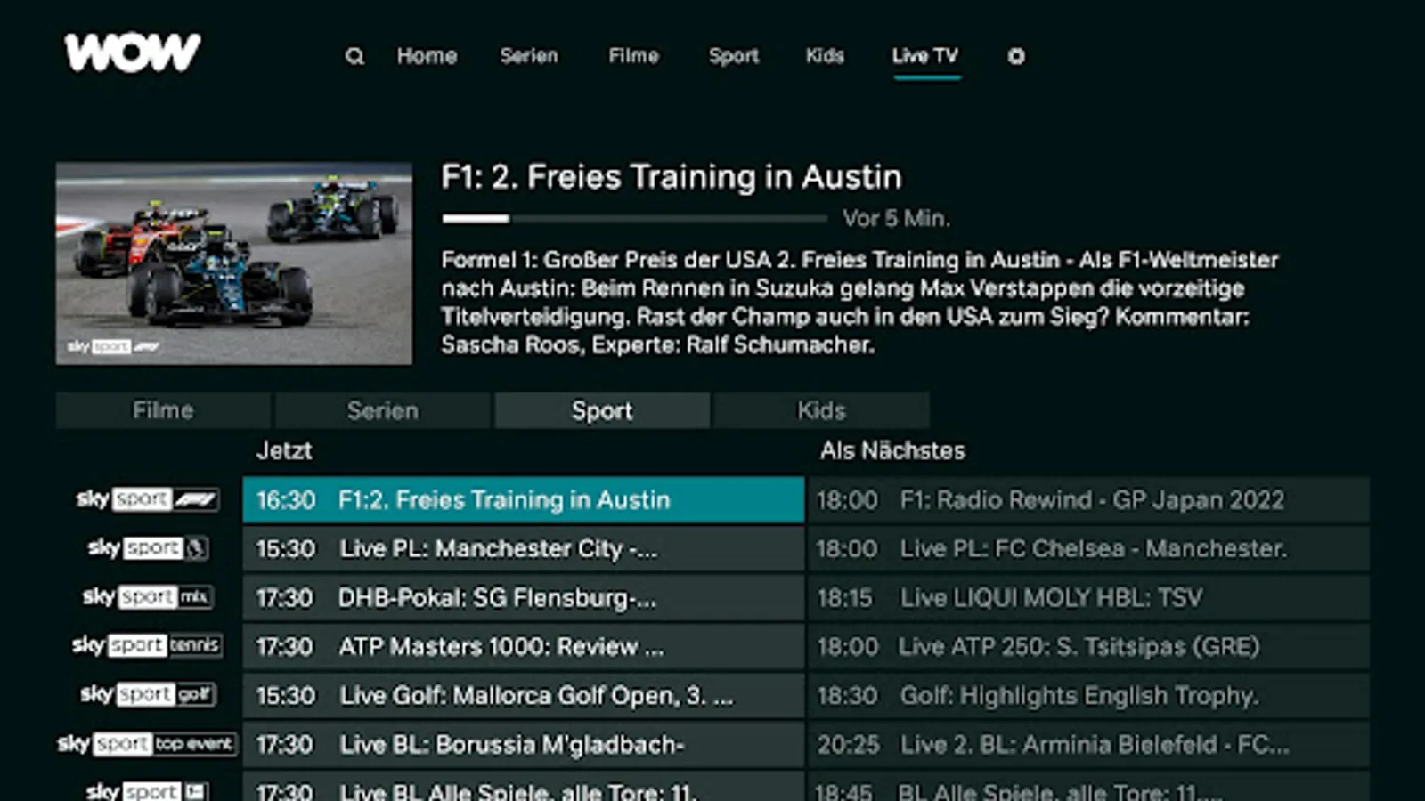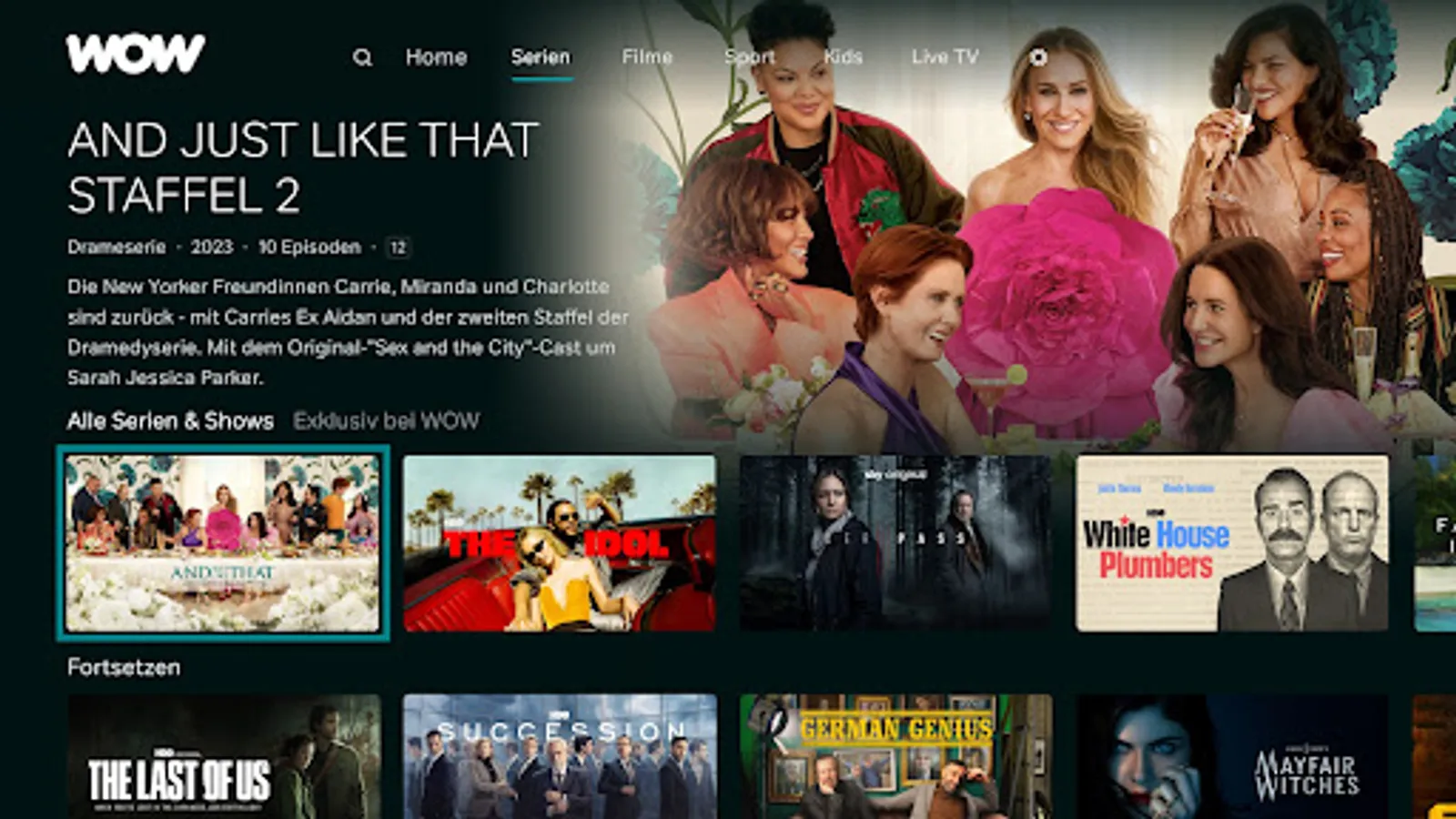 You want series, films & live sports? Then get WOW and stream exclusive top series, current blockbusters and the best live sports from Sky without a long-term contract. Stream instantly on up to 2 devices of your choice simultaneously. Including download function for all mobile devices. Interested in series and films? Then the WOW Movies & Series subscription is just the thing. Enjoy current series parallel to the US launch and award-winning Sky Originals as well as exclusive series from HBO and much more. There are also the latest blockbusters shortly after the cinema and more than 1,000 of the most popular films on demand. sport is your life? With the live sports subscription from WOW, you can stream the best live sports from Sky. Look forward to Bundesliga, Premier League & DFB Pokal. As well as all Formula 1 races and the best of tennis, golf and handball. Includes highlight clips on demand. Streaming has never been so WOW. Your new home for the entertainment you love.