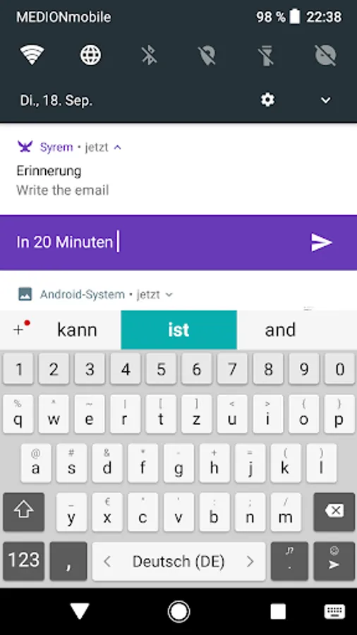 Additionally, the app can synchronize your reminders with other devices - completly End-to-End encrypted. Currently Linux, Windows, MacOs and Android are supported as platform. Downloads can be found on the homepage https://github.com/Skycoder42/Syrem.